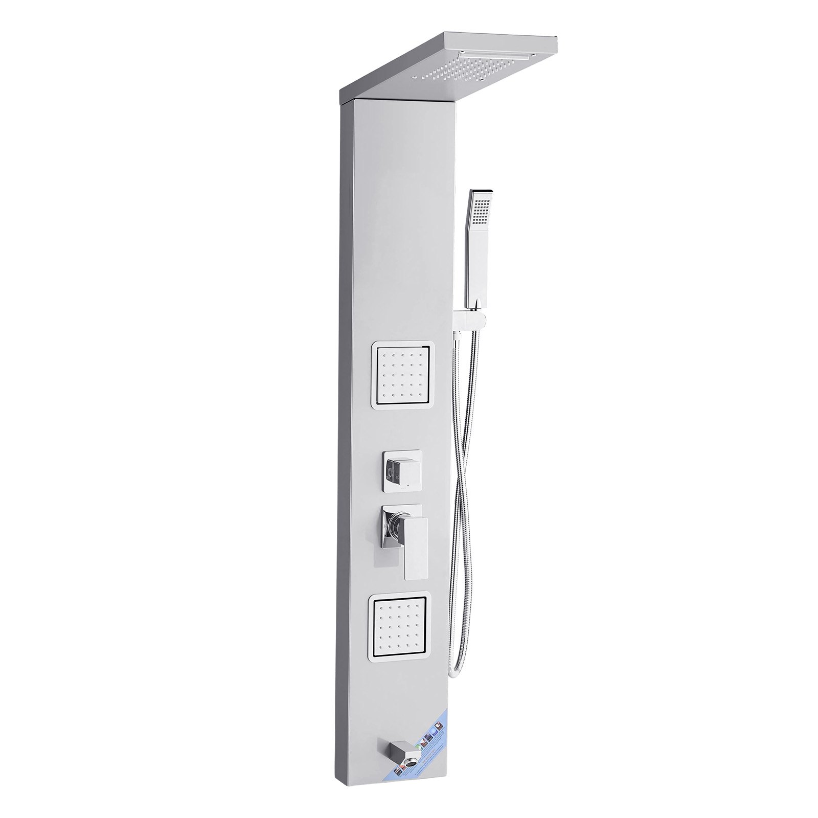 Shower Panel Tower System With Rainfall Waterfall Shower Head, 53 In Brushed Stainless Steel Shower Column, 5-Function Faucet, Wall-Mount Rain Massage System With 2 Body Jet, Handheld, Tub Spout