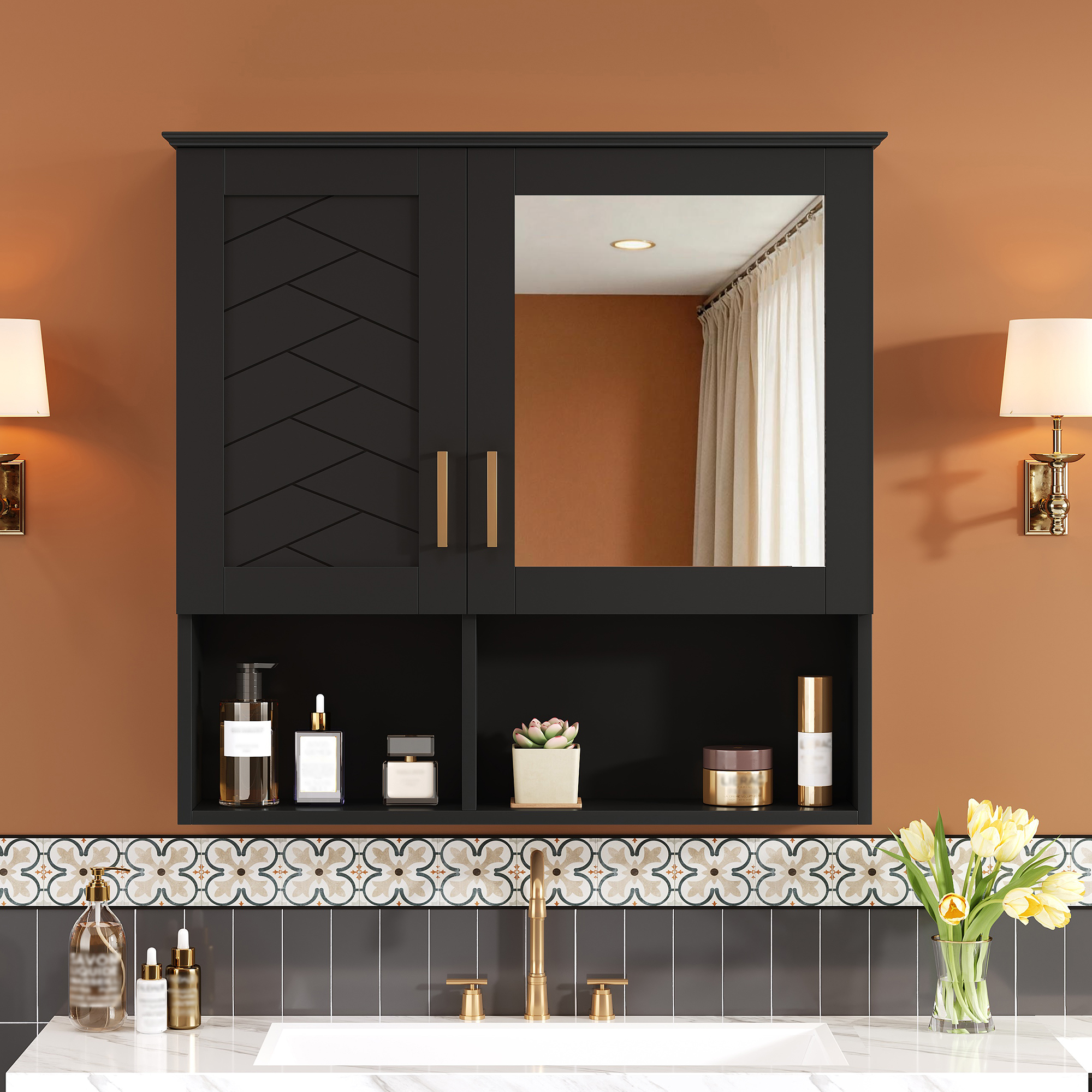 2-in-1 Bathroom Mirror Cabinet, 30 Inch Wall Mounted Medicine Cabinet With Adjustable Shelves & Soft Close Doors, High-Define Mirror With Storage For Bathroom Vanity