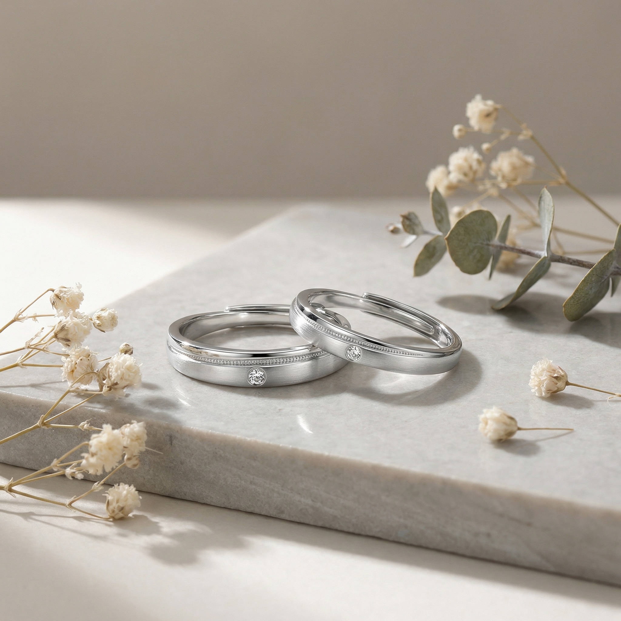 925 Sterling Silver Elegant Adjustable Silver Couple Rings with Matte and Polished Finish
