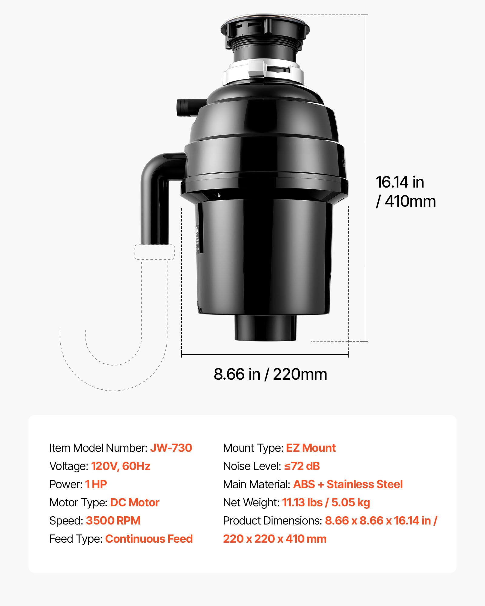 Food Waste Garbage Disposal, 1HP 3500RPM DC Motor, Continuous Feed Kitchen Sink Garbage Disposer, EZ Connect Food Waste Grinding System With Sound Reduction & Power Cord For Kitchens