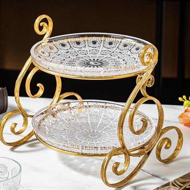 French-style Luxurious Brass And Crystal Glass Double-Layer Fruit Bowl Ornament