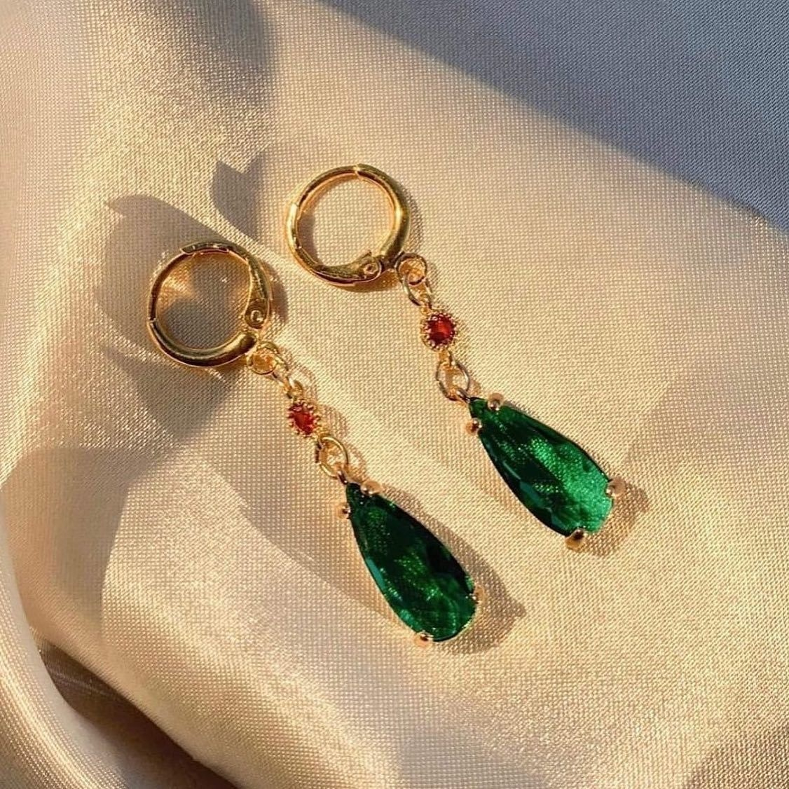 Fashion Green Crystal Water Drop Pendant Earrings