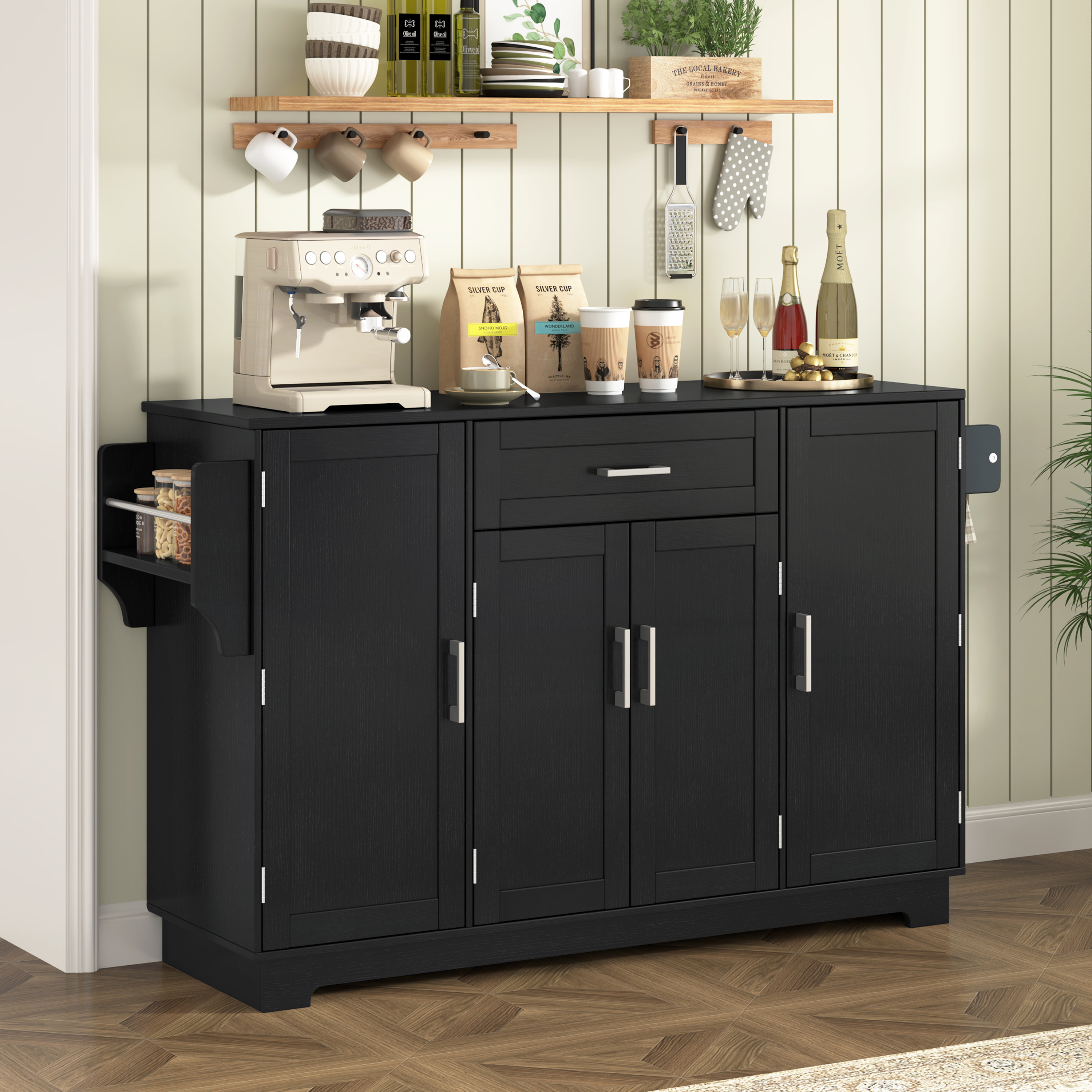 U-STYLE 54.3 Sideboard Buffet Cabinet With Storage 4 Doors & 1 Drawer Melamine MDF Kitchen Storage With Adjustable Shelves Aluminum Alloy Handles Side Shelves & Hanging Rod For Dining Room