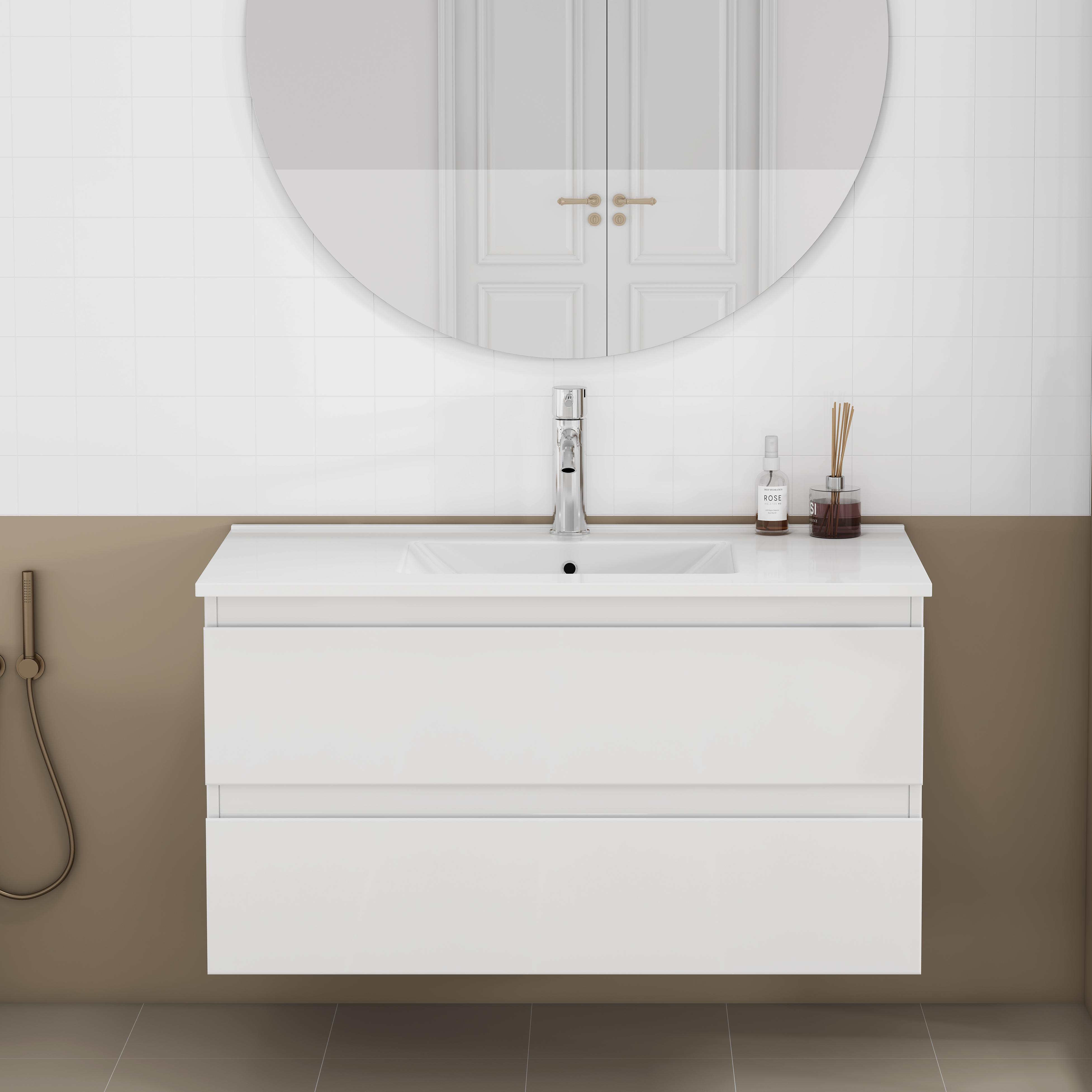 36-inch Bathroom Vanity With Sink Combo,Cabinet With 2 Big Drawers,Soft Close System,2 Big Drawers,Handle-Free Design,Easy Assemble,Glossy White