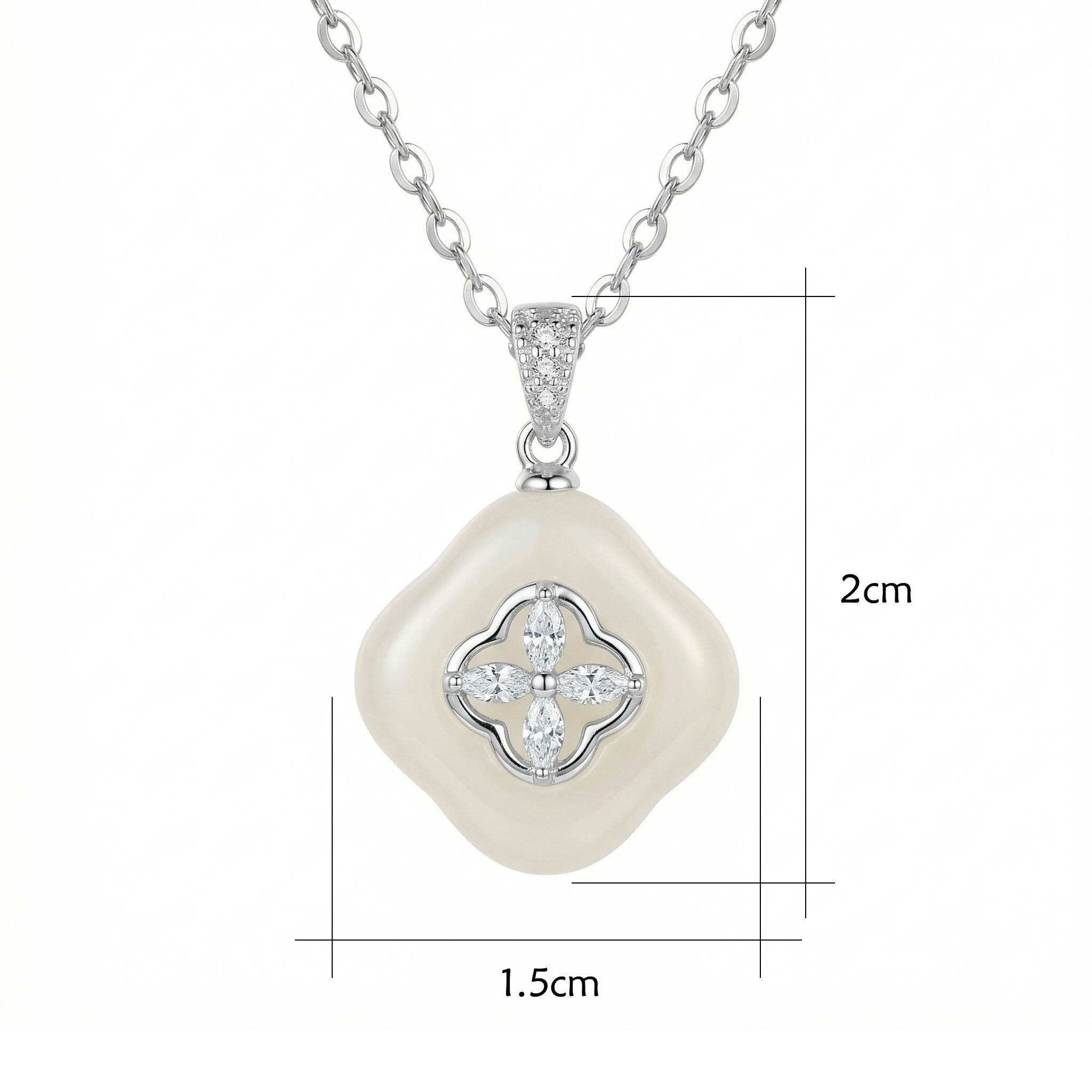 925 Sterling Silver Elegant White Quatrefoil Pendant Necklace with Marquise Accents and Silver Chain