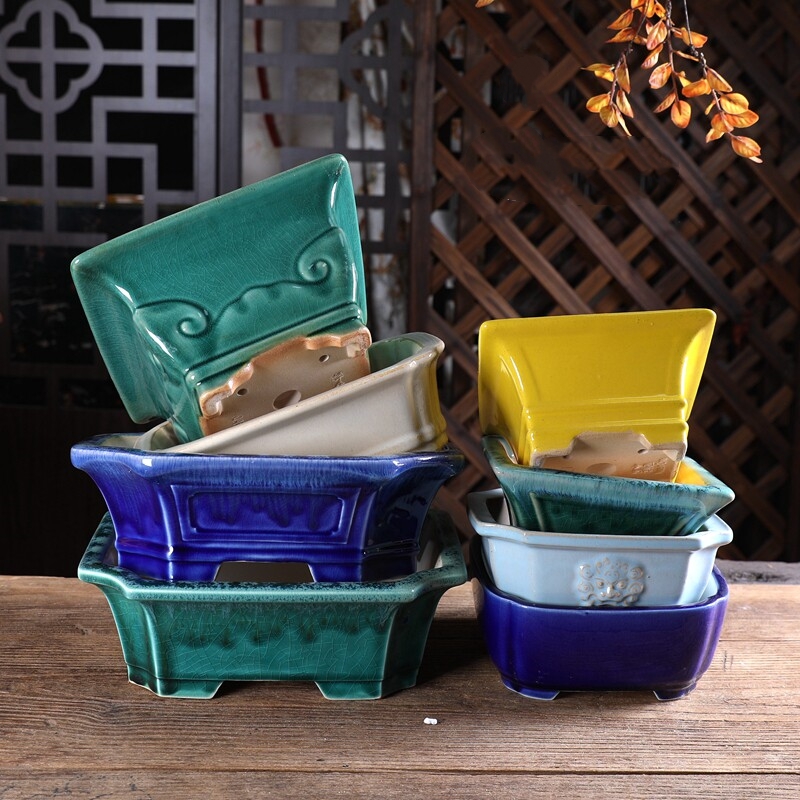 Exquisite Handmade Glazed Pot With Natural Crackle Pattern For Green Plants
