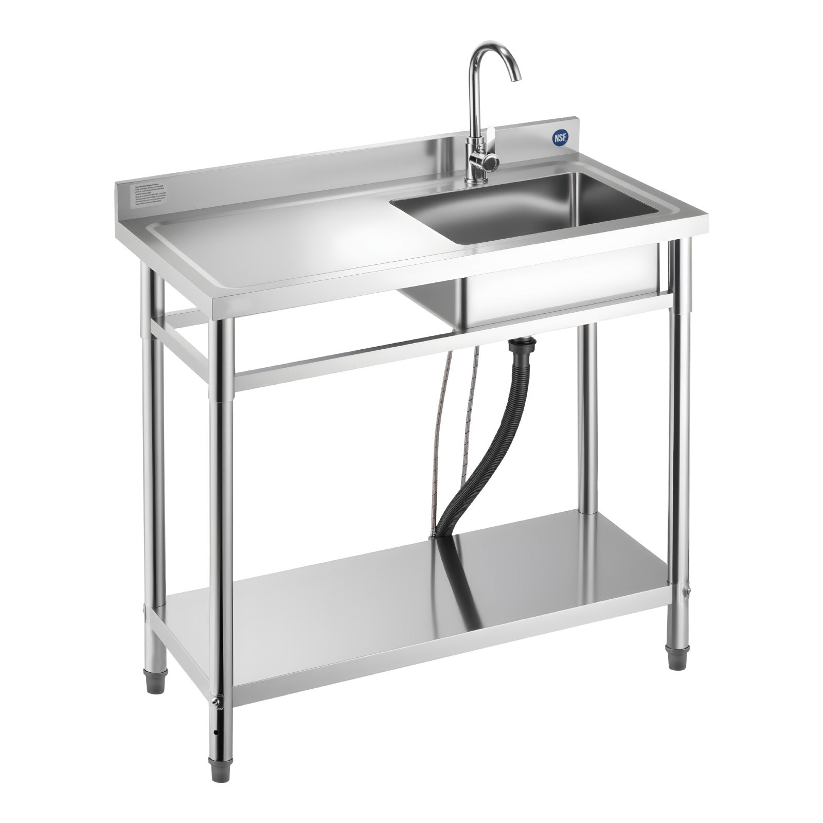 Stainless Steel Utility Sink, Free Standing Single Bowl Commercial Kitchen Sink With Faucet, 39.4 X 19.7 X 37 In, Utility Left Basin With Hot & Cold Water Pipe For Garage, Restaurant, Laundry