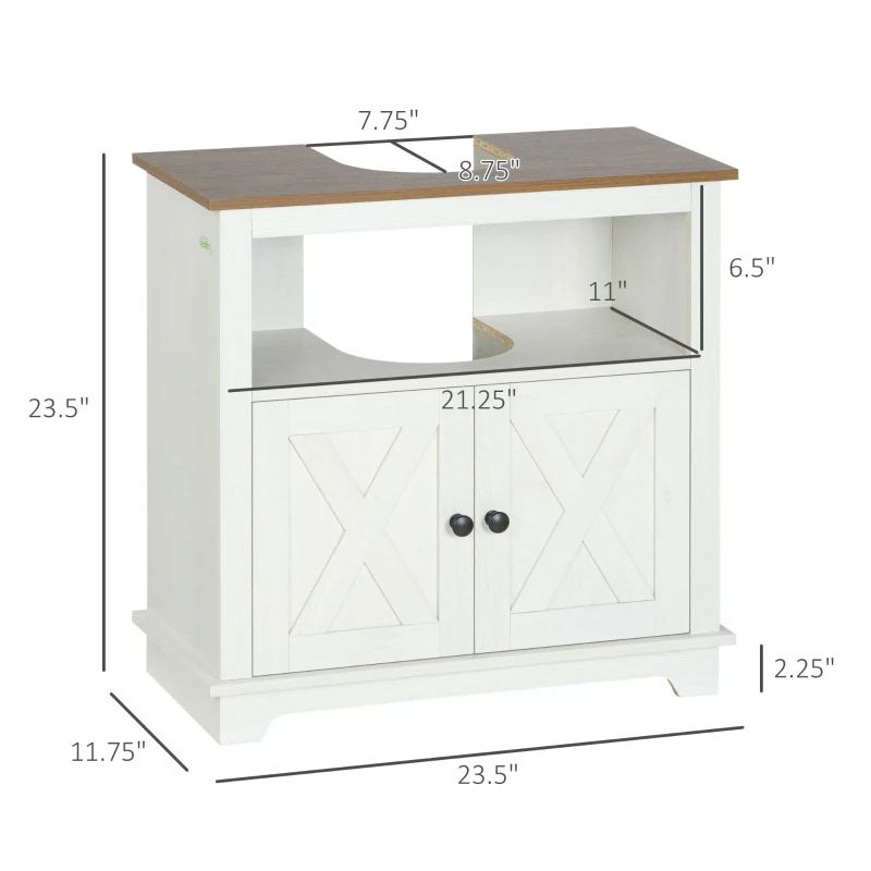 Kleankin Modern Farmhouse Bathroom Sink Cabinet, Pedestal Sink Storage Cabinet With Double Doors And Shelves, White