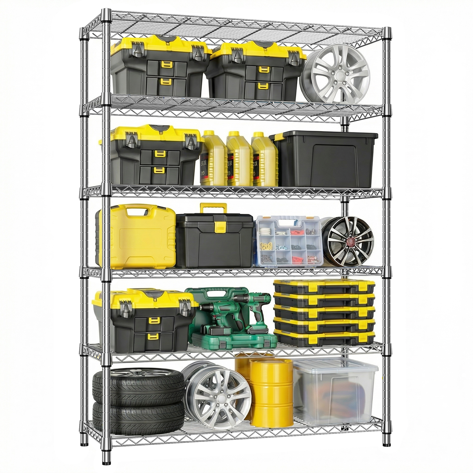 6 Tiers Storage Shelves Load 2100LBS, Metal Shelving Wire Metal Shelving Unit Shelves For Storage Adjustable Garage Shelving For Pantry Kitchen Garage Chrome 17.7 D X 47.3 W X 82.4 H