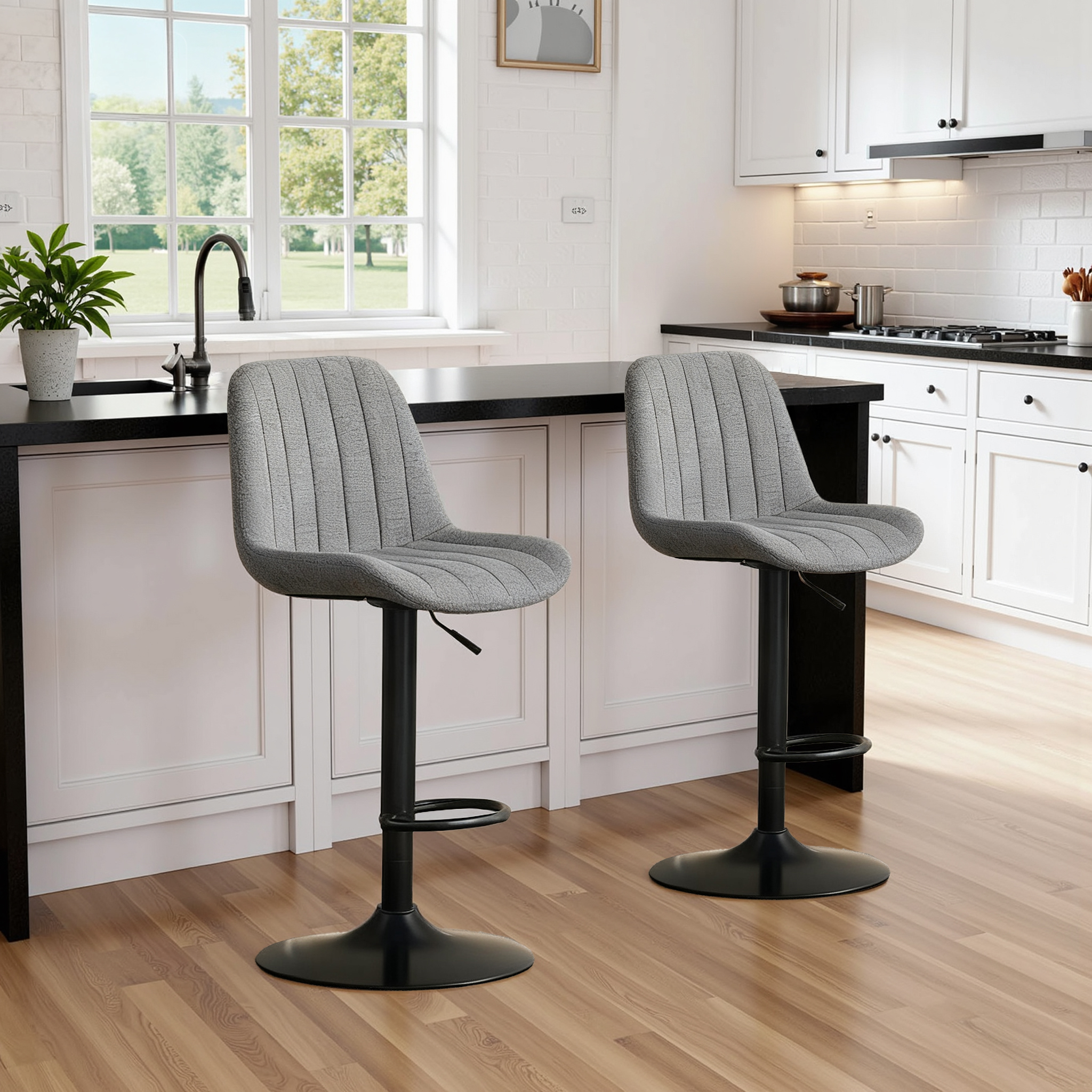 Swivel Bar Stools With Adjustable Height 35.03-43.7 Inches , Backrest, And Soft Knit Fabric - Ideal For Kitchen Island, Bar Counter, Dining Room, Grey Set Of 2
