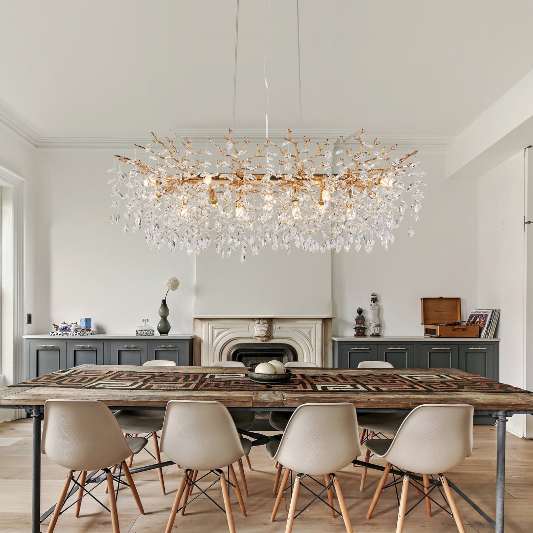 Modern Rectangular Chandelier, 49.2in Gold Crystal Tree Branch Chandelier 14 Lights Luxury Raindrop Light For Dining Room, Kitchen Island, Living Room Bulb Is Not Including