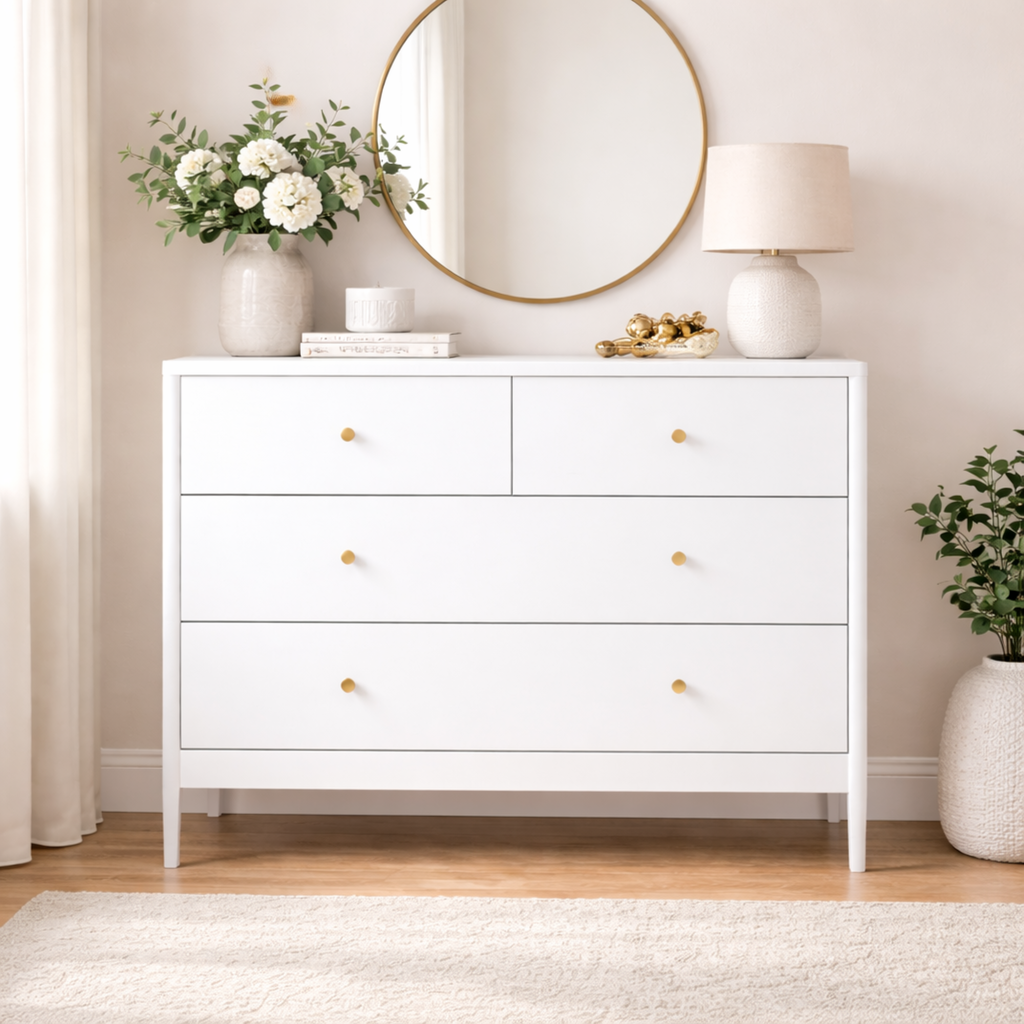 White 4-Drawer Kids Dresser, Wooden Storage Cabinet For Toddler Bedroom, Nursery, Closet, Baby Nightstand Organizer For Living Room Or Apartment, 35.4 Wide