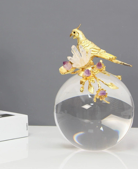 Creative Fortune-Attracting Crystal Ball With Luxe Copper Bird Ornament
