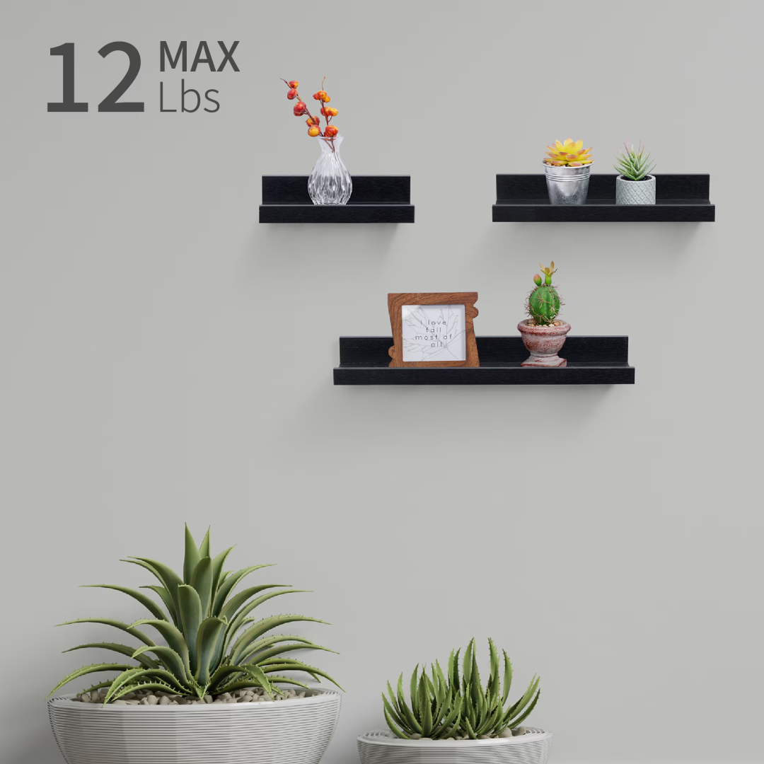 Floating Shelves 18.11 Wall Mounted Wood Shelves For Bathroom, Bedroom, Living Room, Kitchen, Hanging Shelf For Books Storage Decor With Invisible Brackets, Black