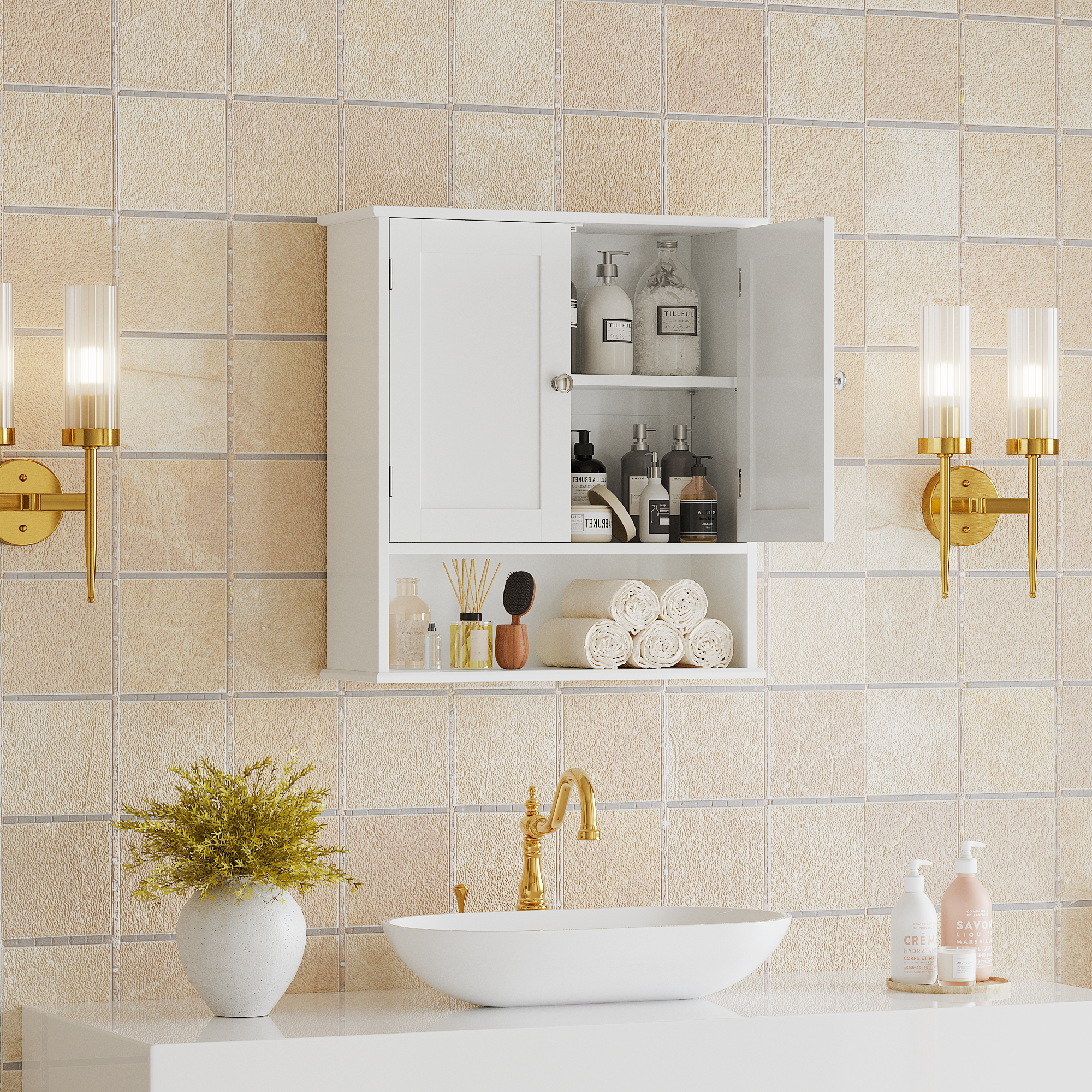 Bathroom Wall Cabinet With Door, Over Toilet Storage Cabinet With And Adjustable Shelves, 3-Tier Medicine Cabinet Wall Mounted, For Bathroom, Kitchen, Entryway, Laundry Room, White