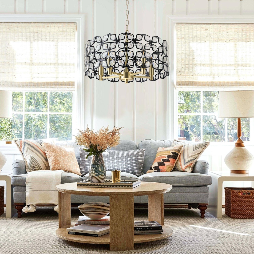 19 Geometric Crystal And BlackGold Round Pendant Chandelier - Modern 5-Light Fixture For Dining Room, Living Room, Or Kitchen Bulb Not Included