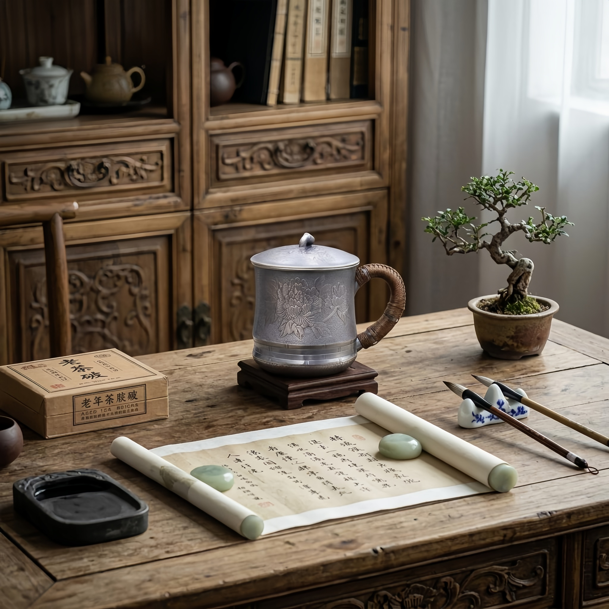 925 Sterling Silver Elegant Peony Mug with Woven Handle-Premium Tea Mug - Handicraft