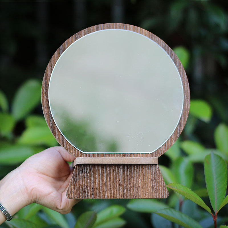 Round Simple Portable Wooden Vanity Mirror