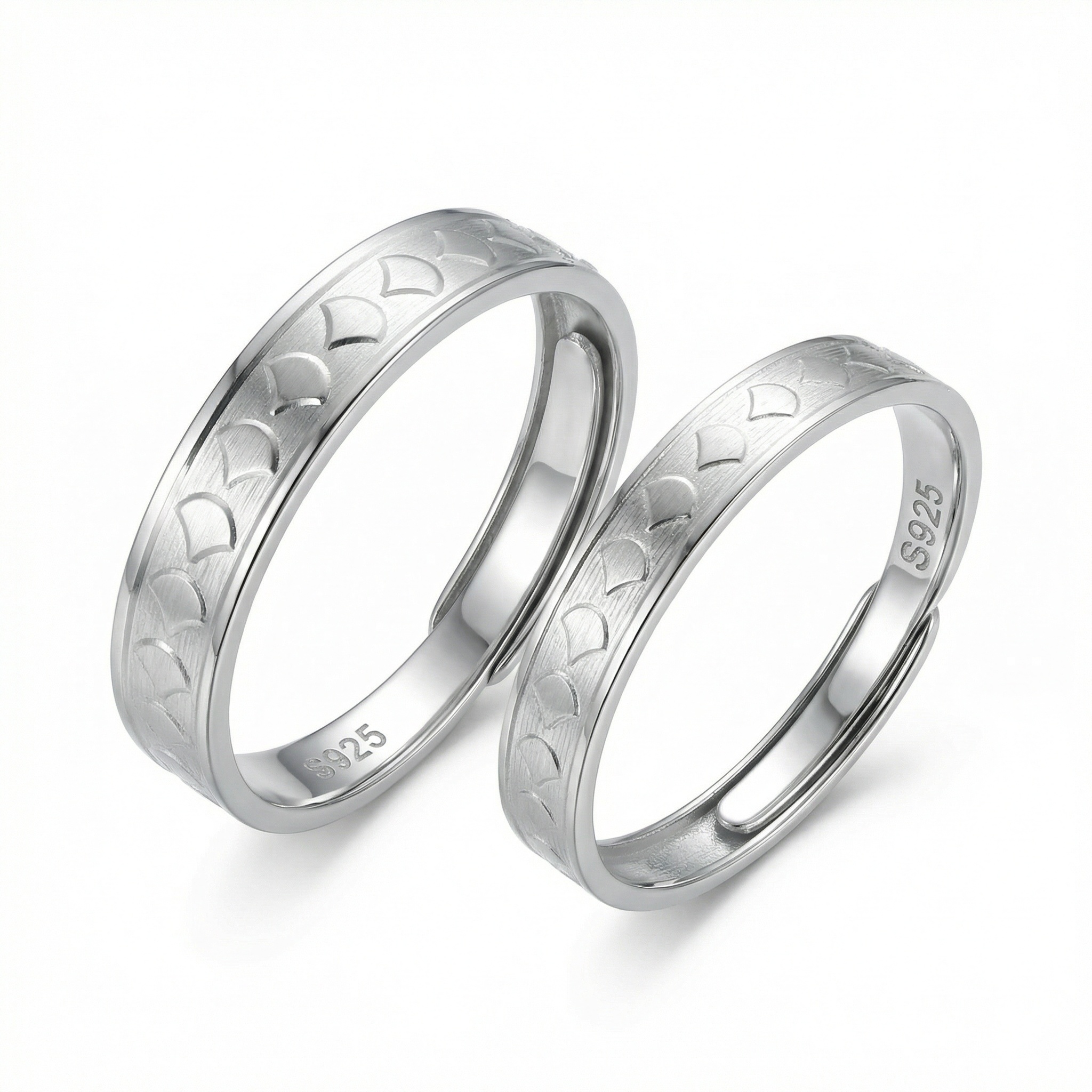 925 Sterling Silver Elegant S925 Sterling Silver Adjustable Couple Rings Set with Brushed Finish
