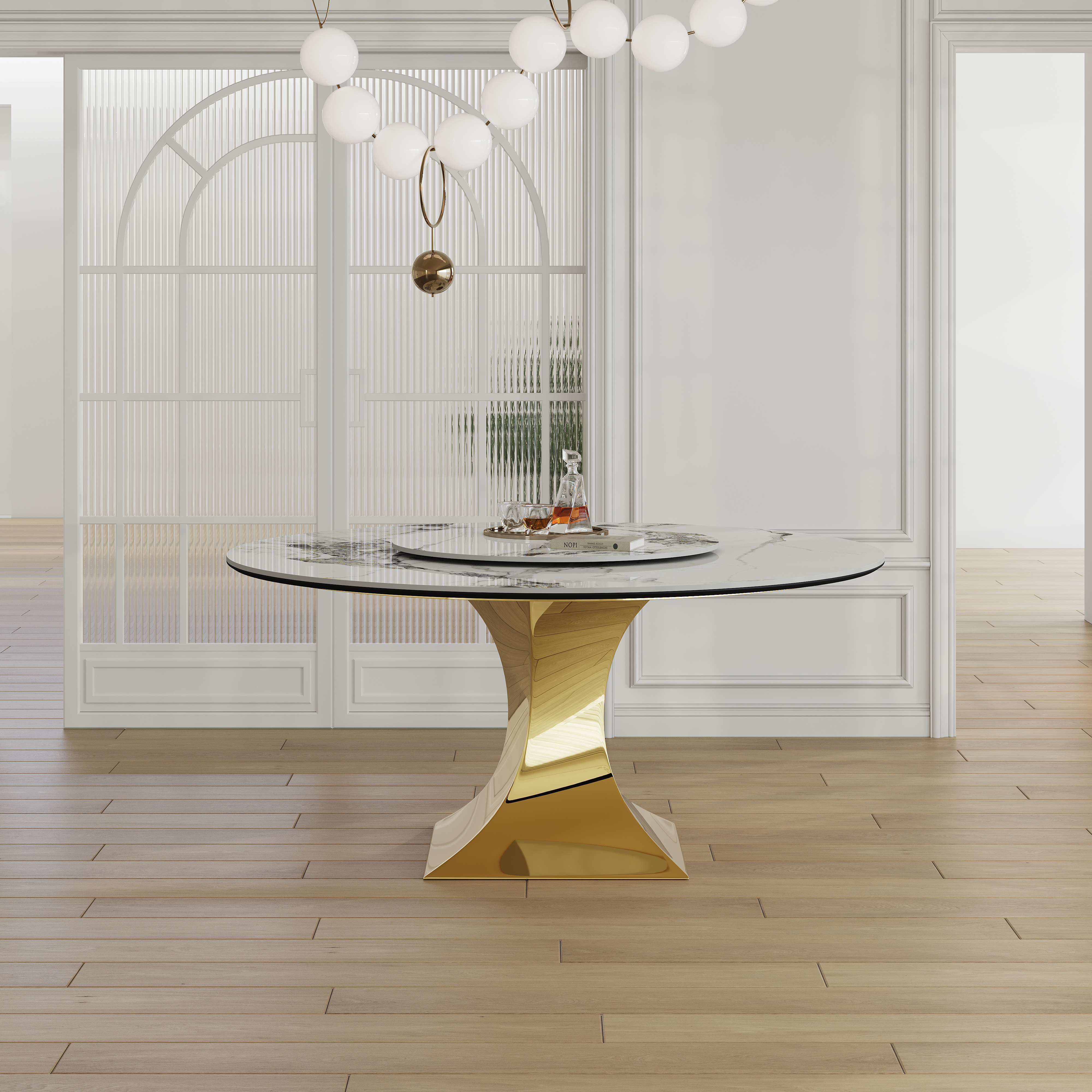 59 Round Sintered Stone Dining Table Set With Gold Stainless Steel Hourglass Base - Modern Luxury Marble-Look Kitchen Table For 4-6 People Scratch & Heat Resistant Surface-Only Table