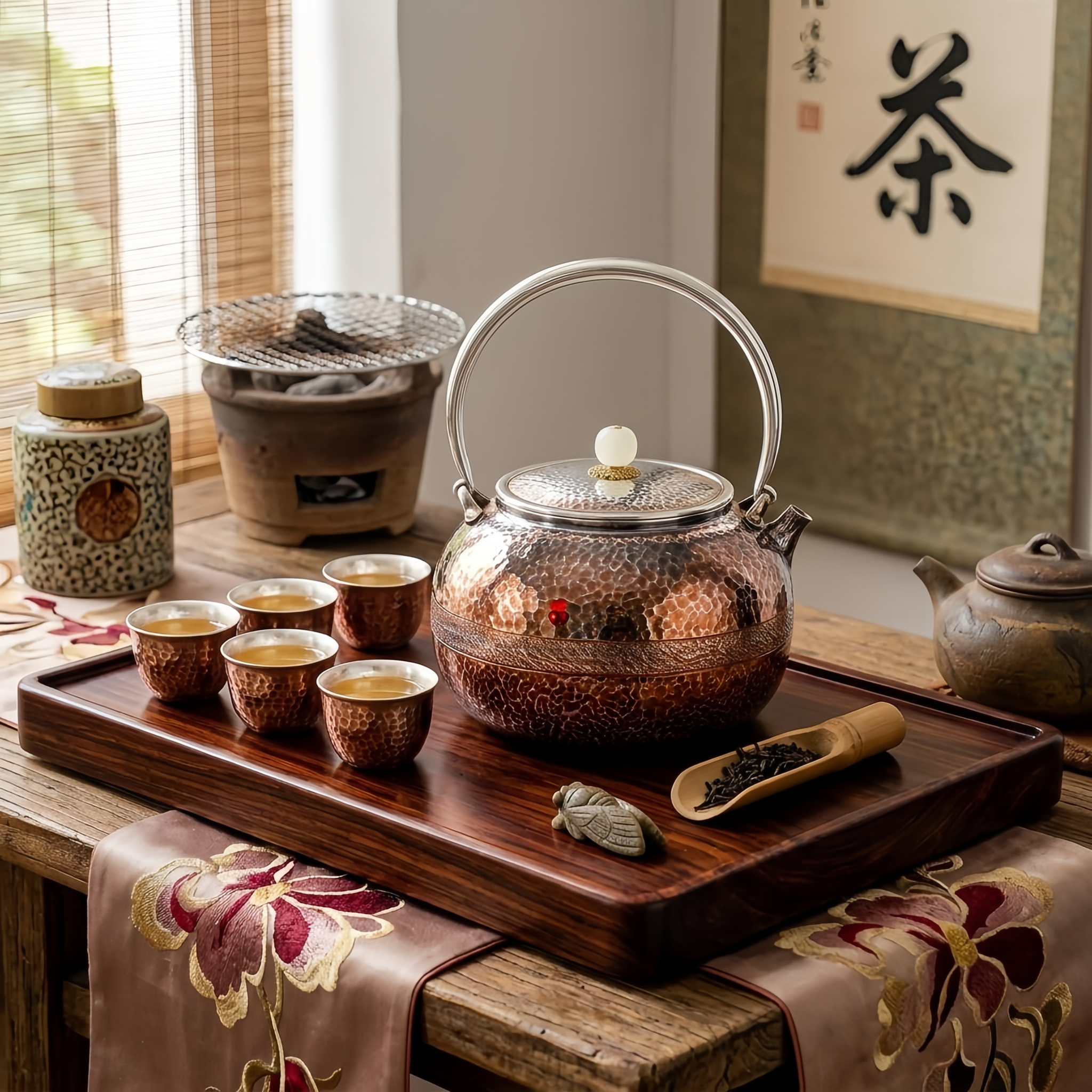 925 Sterling Silver Elegant Hammered Copper Teapot with Stainless Steel Handle and Pearl Accent-Fine large teapot - Handicraft