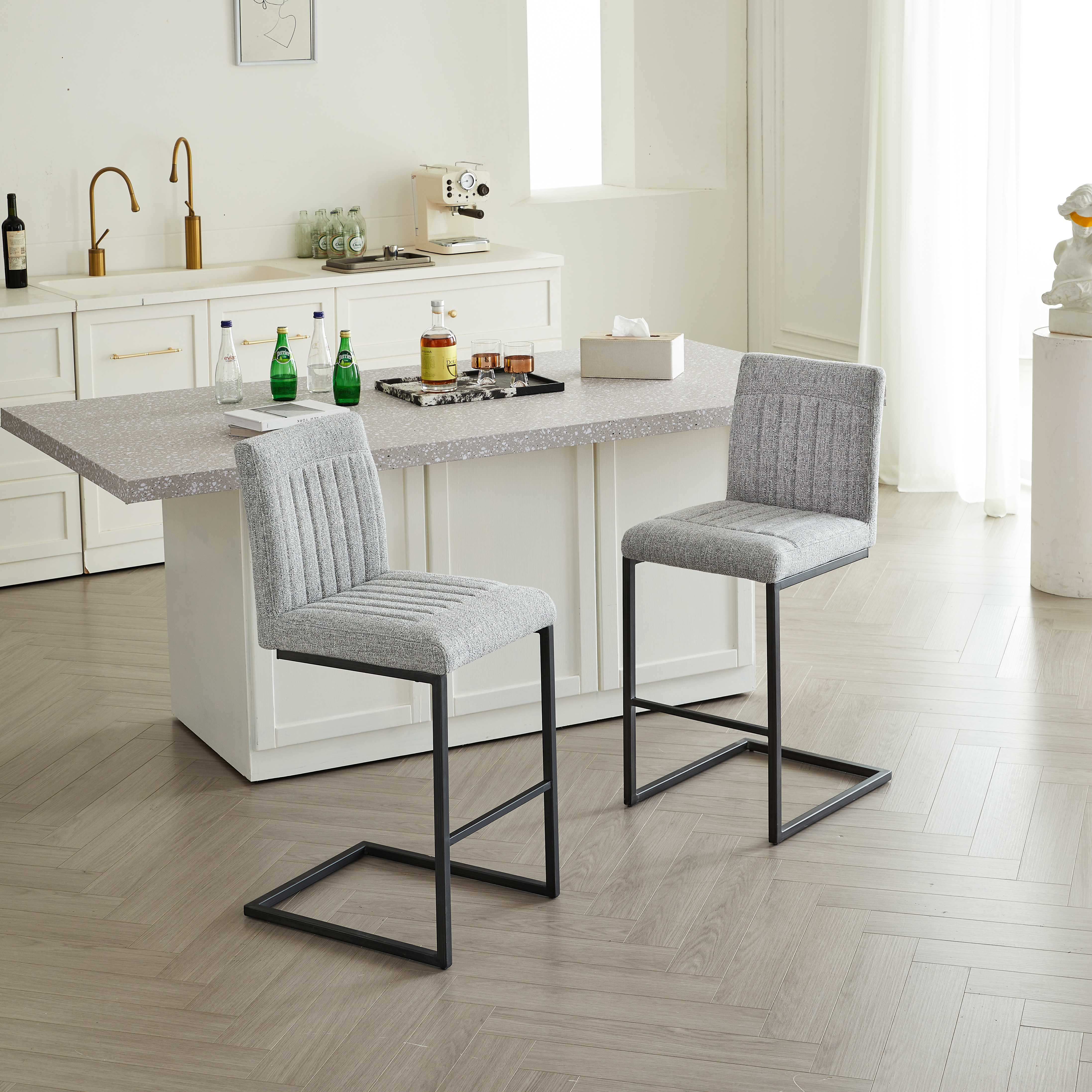 Bar Stool Light Gray Fabric Chair With Sturdy Black Metal Frame Stylish & Comfortable Seating For Kitchen Island Living Room & Pub 2 Sets