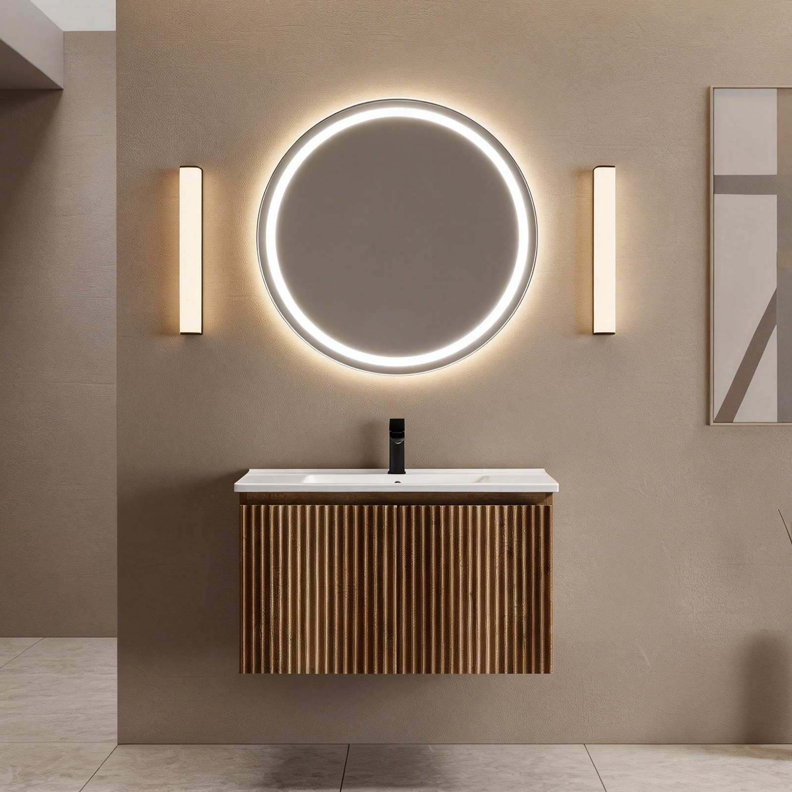30inch Gloden Oak Folding Wall Cabinet With Creamic Sink- Patented 1-Minute Install Space-Saving & Easy Assemble Modern Style