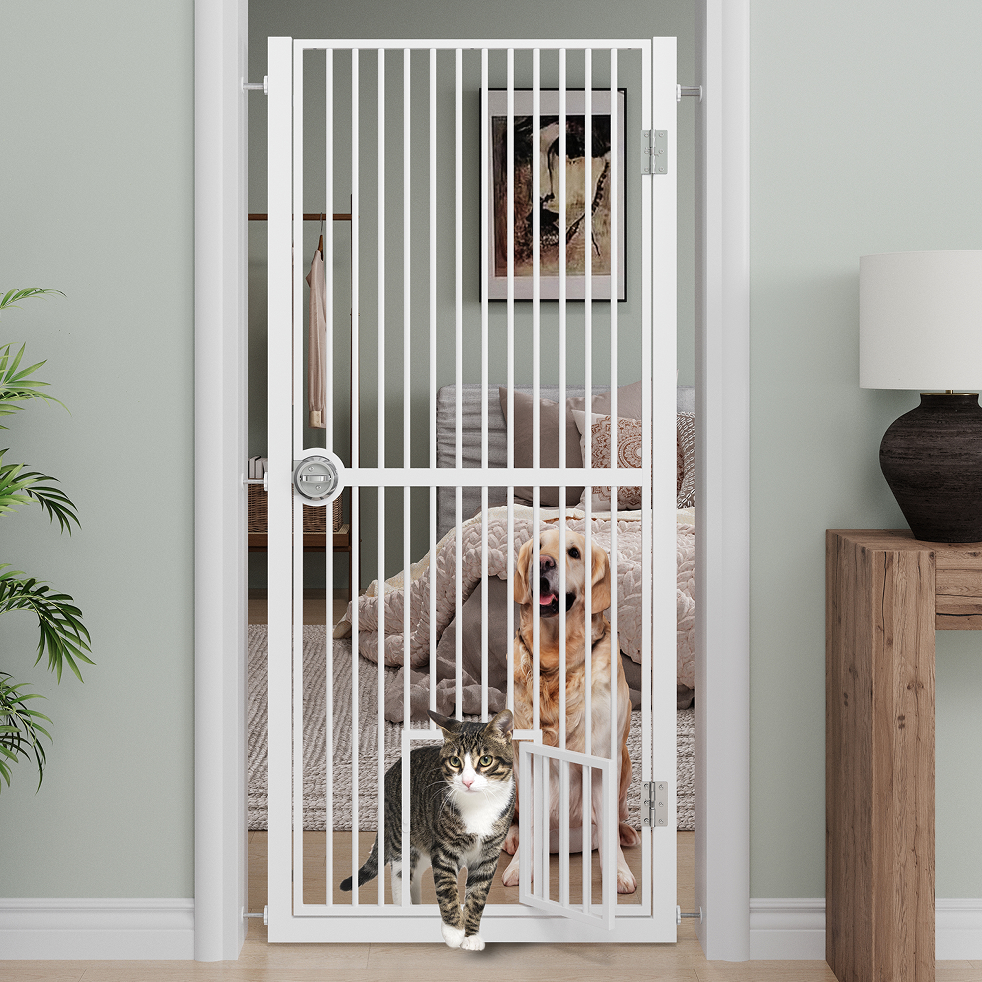 61 Extra Tall Cat Gate For Doorway, Adjustable Wide 30.2 -32.6 Dog Door With Cat Door, Suitable For Doorways Or Kitchen, No Drilling Pressure Mount Kit, White