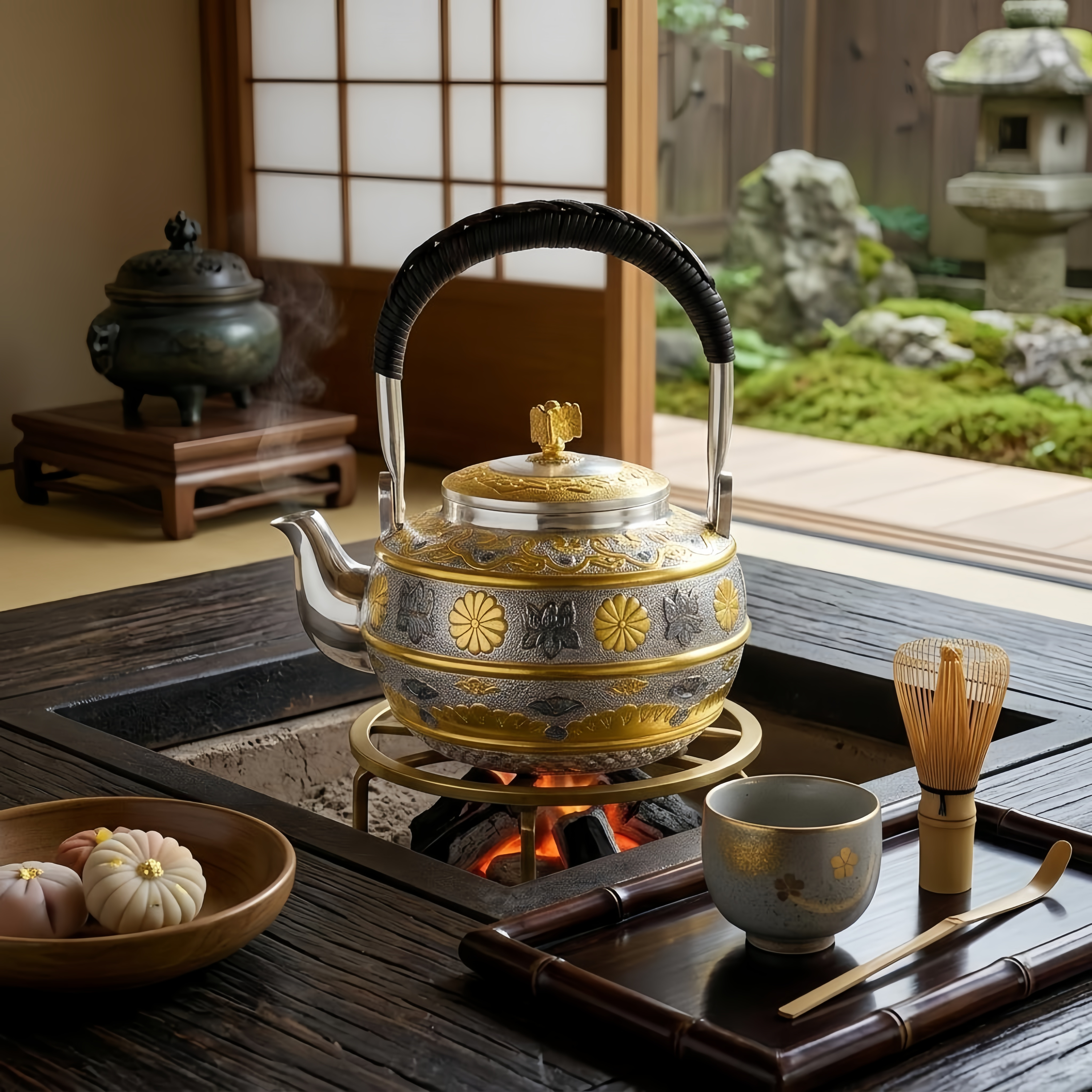 925 Sterling Silver Elegant Ornate Silver Kettle with Intricate Floral Embossing and Woven Handle - Handicraft