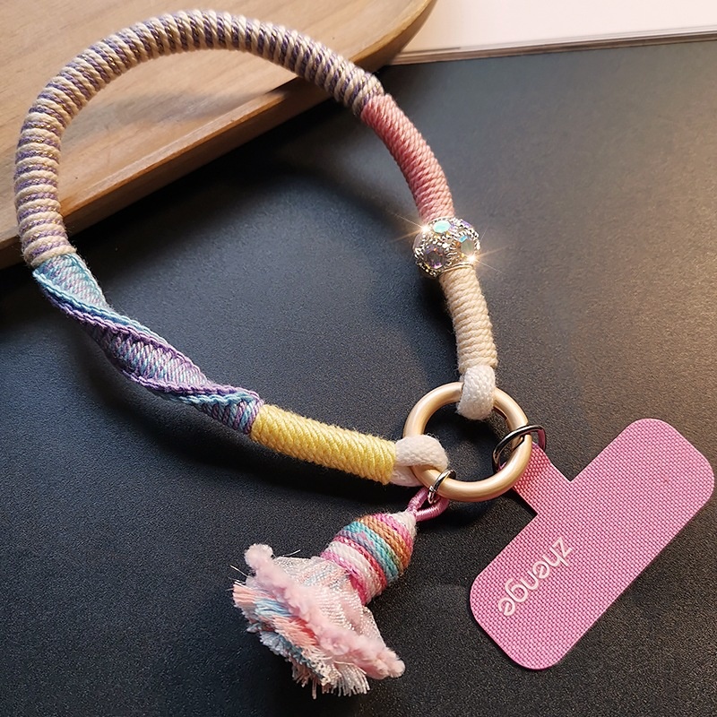 Contrast-color Tassel Pendant Hand-woven Sturdy And Durable Phone Lanyard