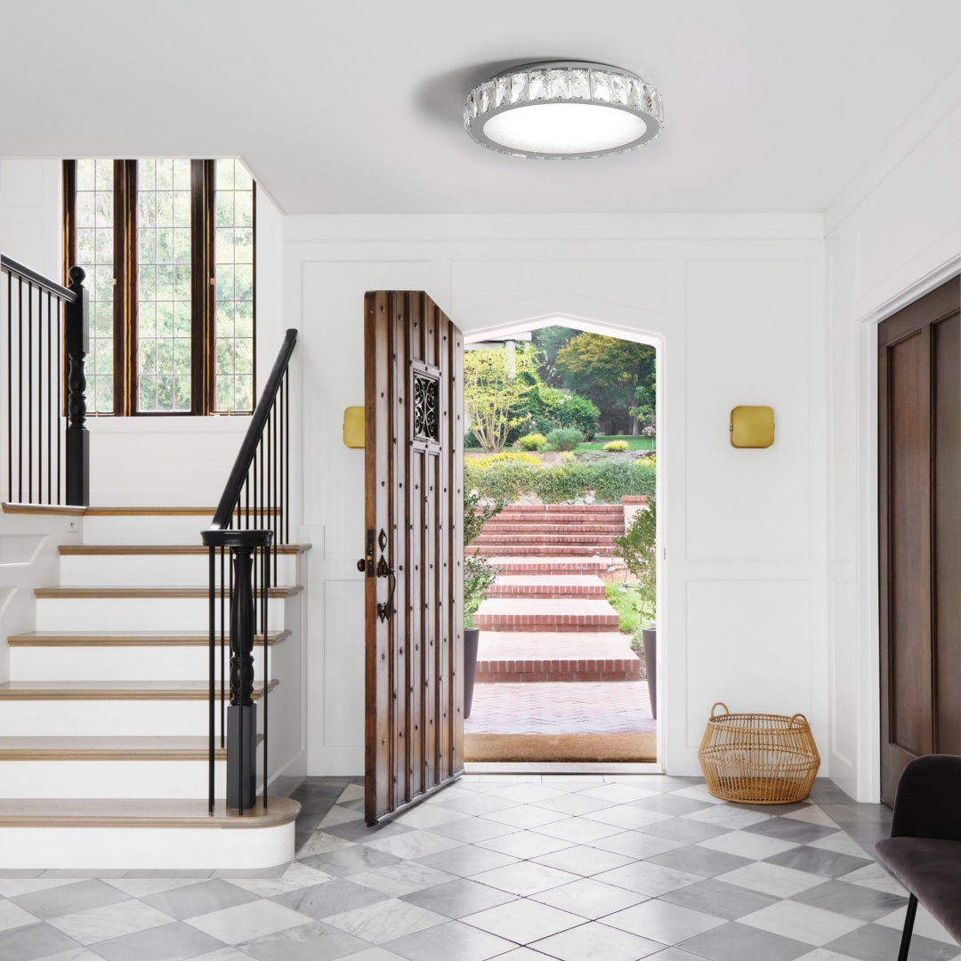 Crystal LED Ceiling Light, 13.8-Inch Flush Mount, 38W Dimmable Modern Fixture, Energy-Saving, Perfect For Living Room, Bedroom, Kitchen