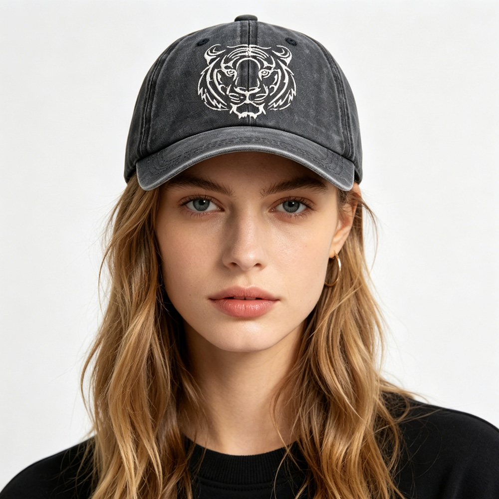 2pcs Tiger Head Embroidered Baseball Cap - Vintage Washed Cotton Hat, Adjustable Unstructured Low Profile, Wildlife Animal Cap For Men Women