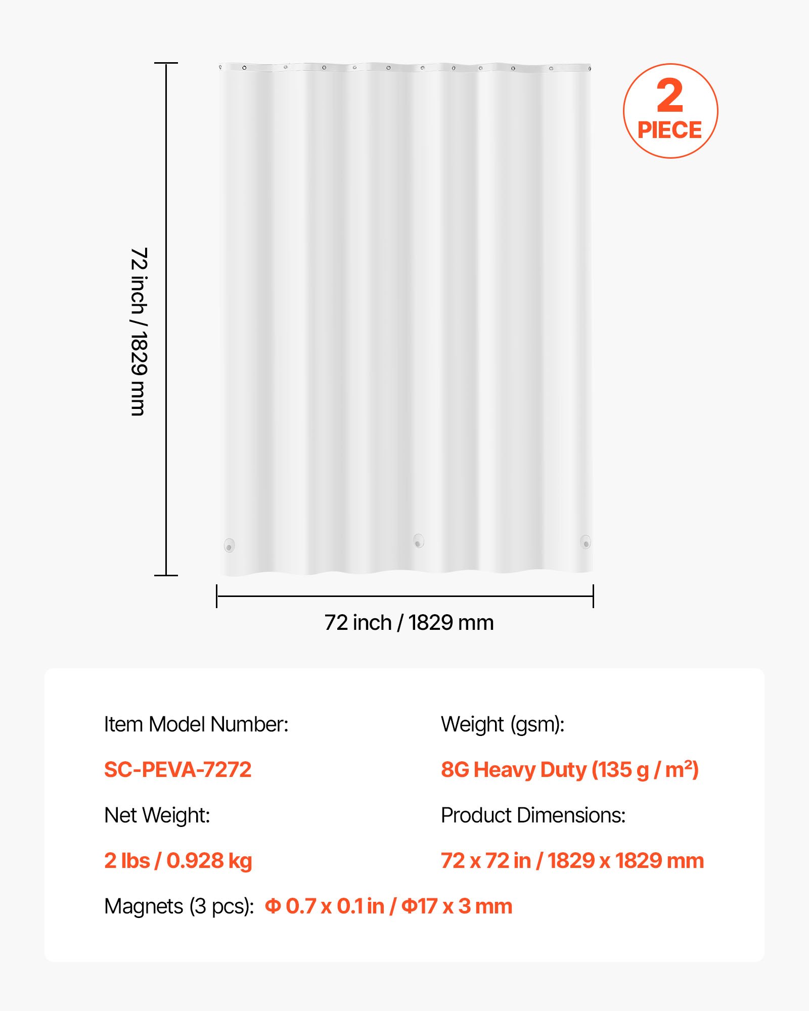 Shower Curtain Liner, 8G Heavy-Duty PEVA Shower Liner, 2-Pack Waterproof Plastic Liners With 3 Magnets And 12 Rust-Resistant Metal Grommet, For Bathroom Showers & Bath Tubs, 72 X 72 In (White)