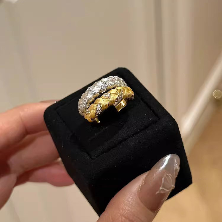 S925 Sterling Silver Brushed Woven Wheat Ear Ring For Women, Light Luxury Vintage Style, Heavy Craft Texture Twist Finger Ring