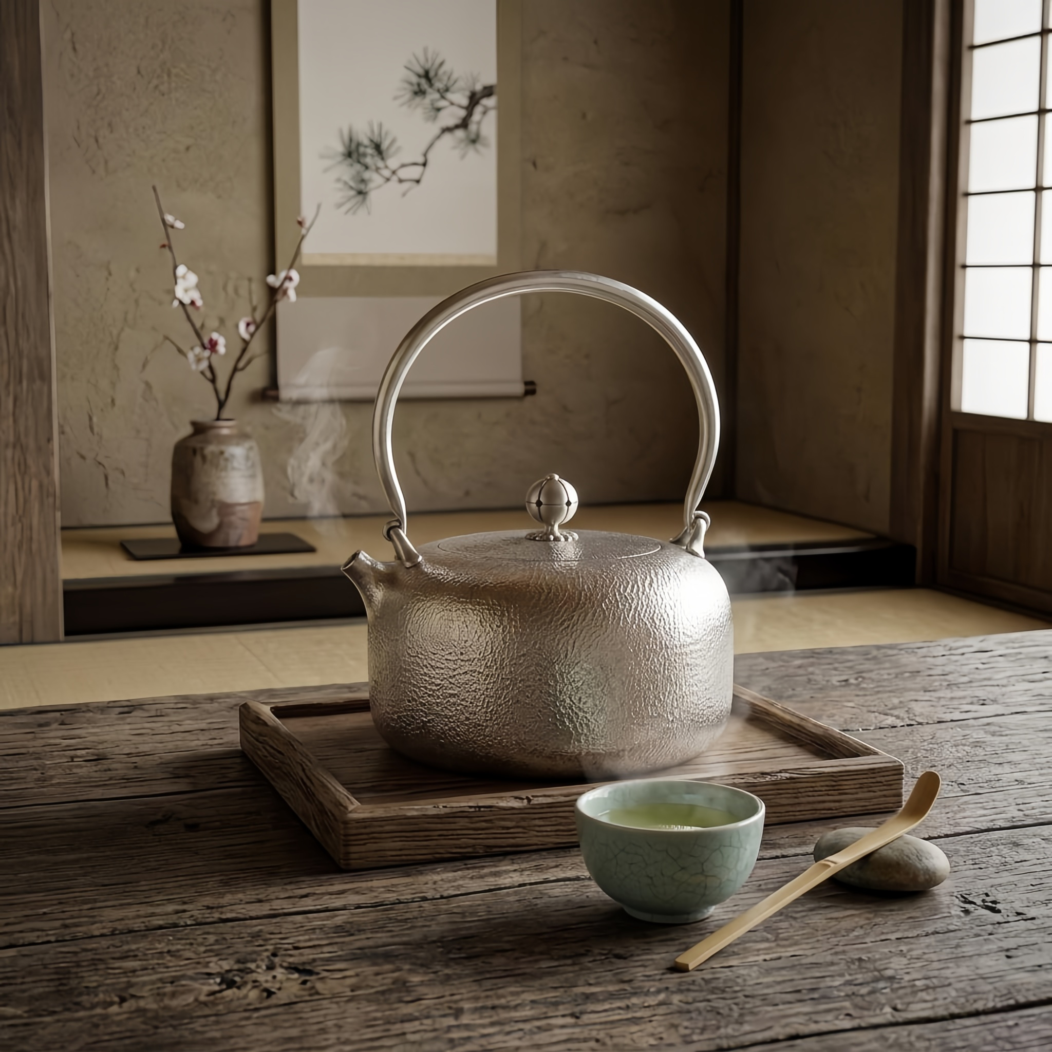 925 Sterling Silver Elegant Handcrafted Hammered Metal Teapot with Arched Handle-Fine large teapot - Handicraft