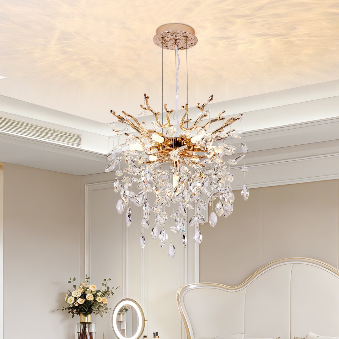 Modern Tree Branch Crystal Chandelier Luxury Gold Crystal Pendant Lighting 18in Contemporary 7-Light Chandeliers For Dining Room Kitchen Bedroom Living Room Bulb Is Not Including