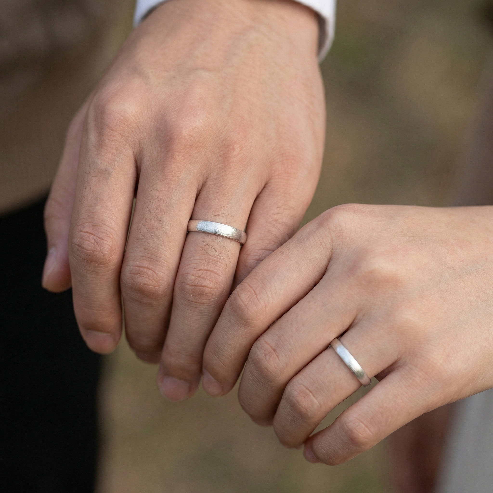 925 Sterling Silver Elegant Minimalist Brushed Silver Adjustable Matching Couple Rings Set