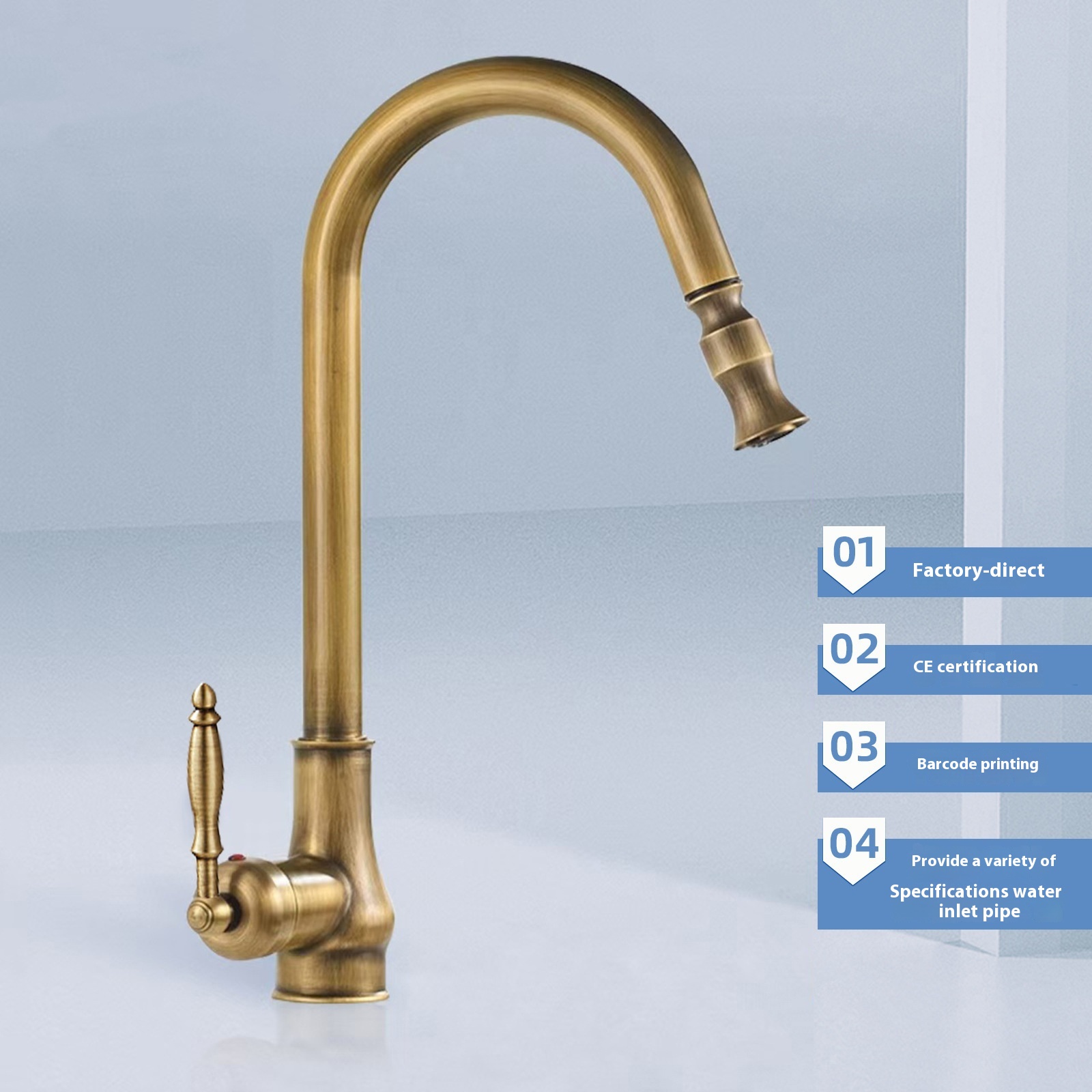 Vintage Kitchen Splash-proof Brass Pullout Faucet