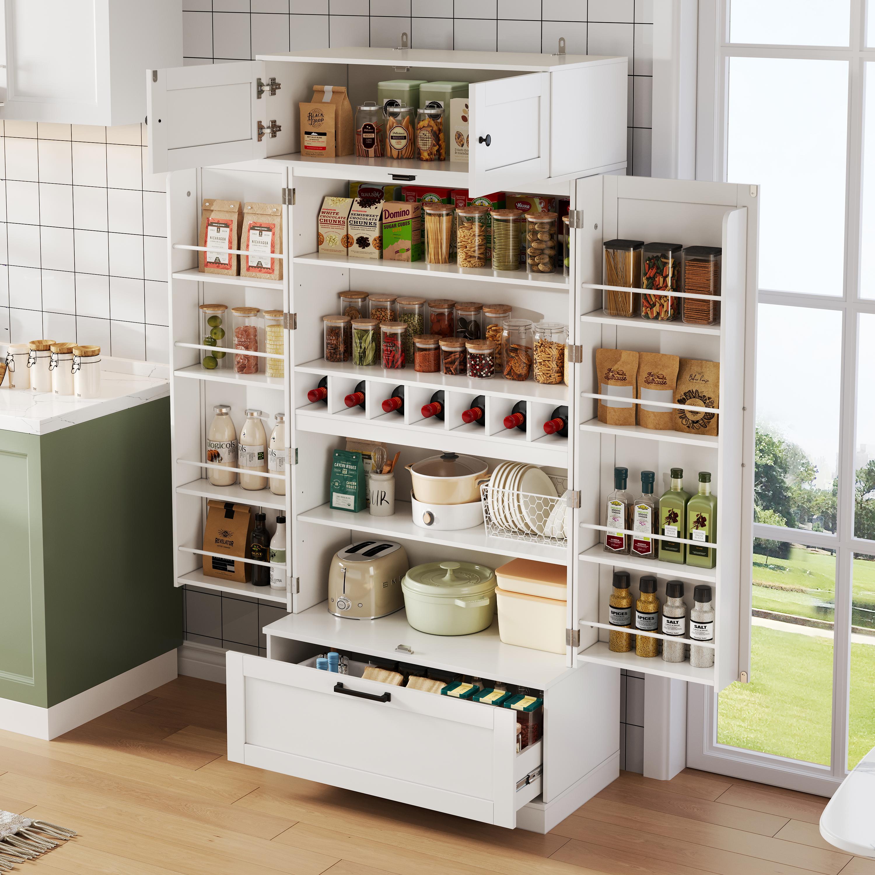 80x40x180cm Large, Freestanding Kitchen Storage Cabinet , Pantry With Adjustable Shelves, Drawers, Wine Rack, And Doors With Shelves, For Kitchen Dining Room Living Rom