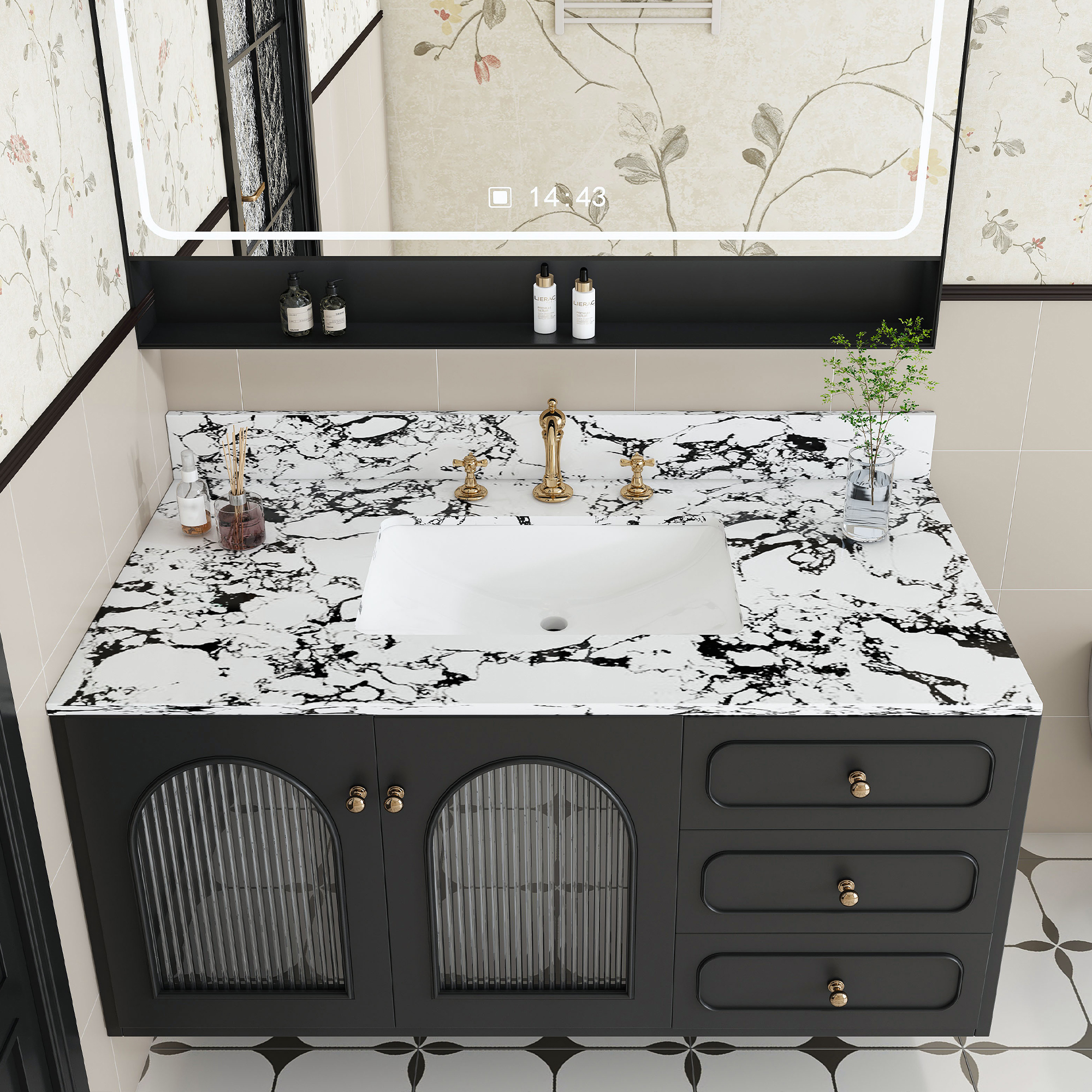 43x22 Bathroom Vanity Top, With Undermount Ceramic Sink And Backsplash, Artificial Marble Bathroom Vanity Top With 3 Faucet Holes, New Carrara White And Black Only Bathroom Vanity Top