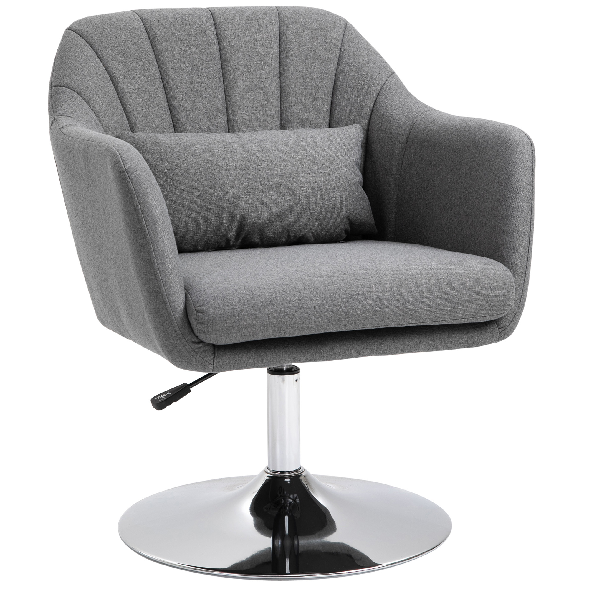 Swivel Linen Fabric Accent Chair For Living Room Contemporary Vanity Armchair With Adjustable Height Thick Cushion Lumbar Support Armrest For Bedroom Office Dark Grey