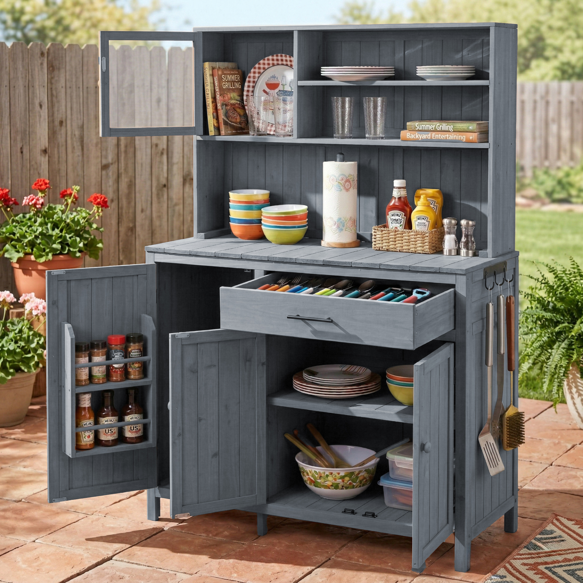 With Assembly Video TOPAMx Potting Bench With Hutch 65 H Solid Fir Wood Garden Workstation Large Countertop Patio Kitchen Island With Adjustable Shelves Spice Rack Side Hook And Drawer Gray