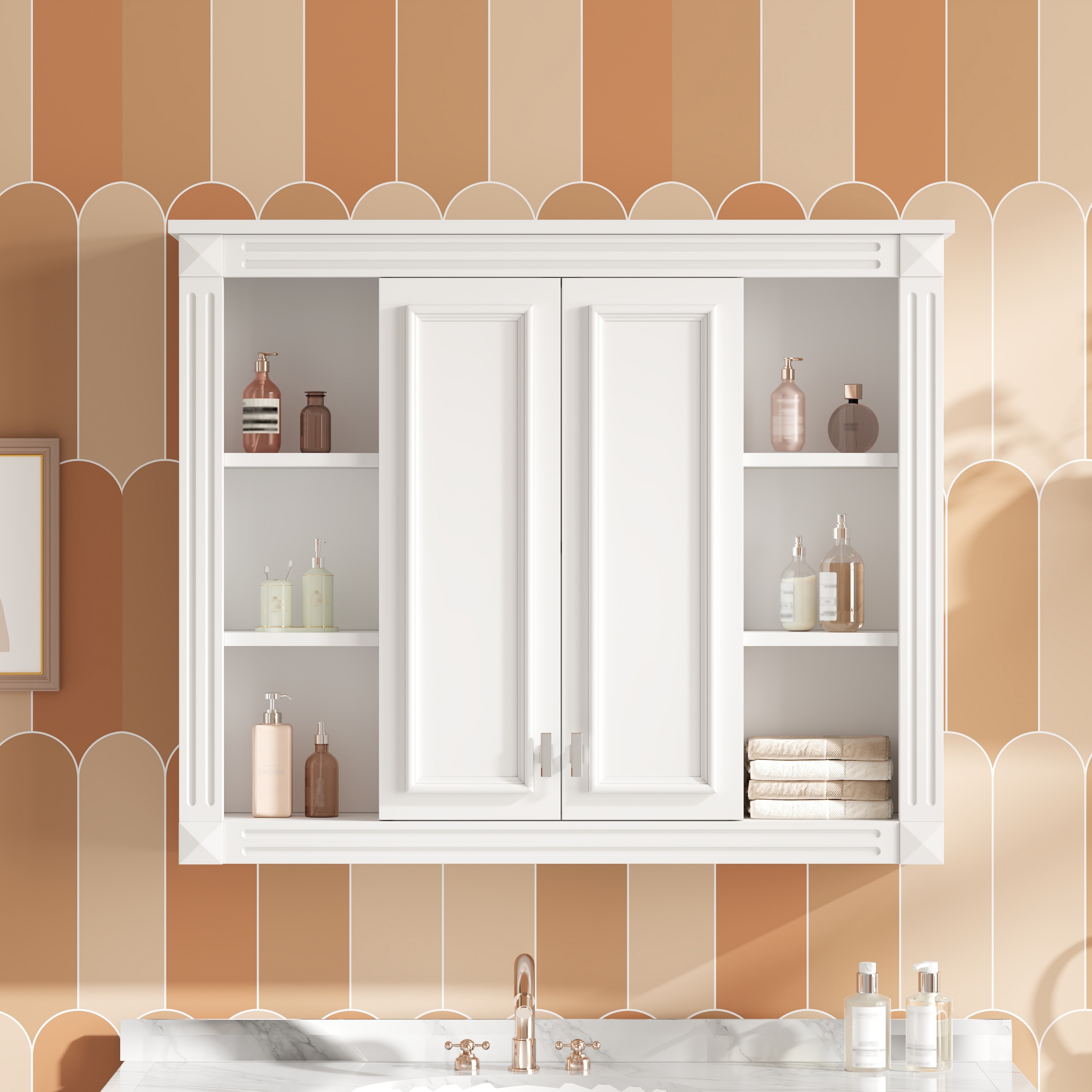36'' X 28'' Medicine Cabinet, Wall Mounted Bathroom Storage Cabinet, With 1 Adjustable Shelf, Wall-Mounted Medicine Cabinet For Bathroom, Soft-Closing Hinges, Swing-Open Doors