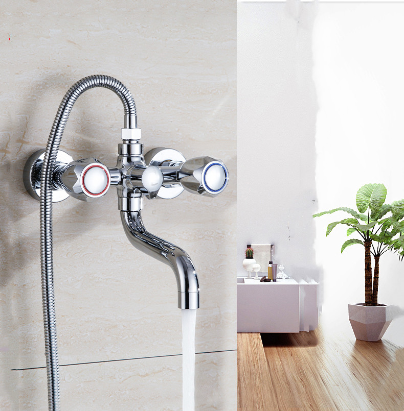 Bathroom Concealed Triple Shower Mixer Valve Copper Double Control Bathtub Faucet