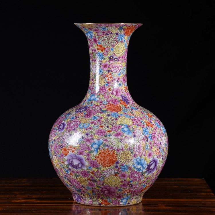 Antique-style Enamel-color Peony-and-goldfish Vase With A Fish-tail Base For Decoration
