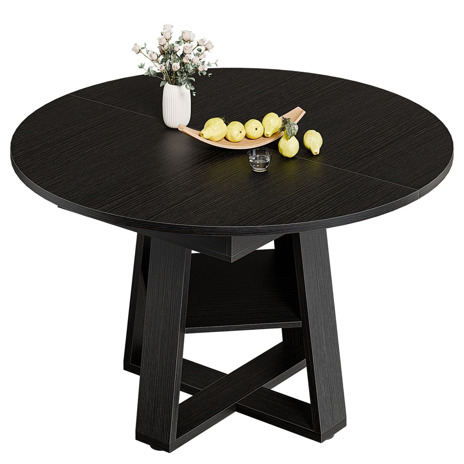 Extendable Oval Dining Table For 4-8, Modern Kitchen Table With Storage Shelf, Wood Pedestal, Space Saving Modern Style