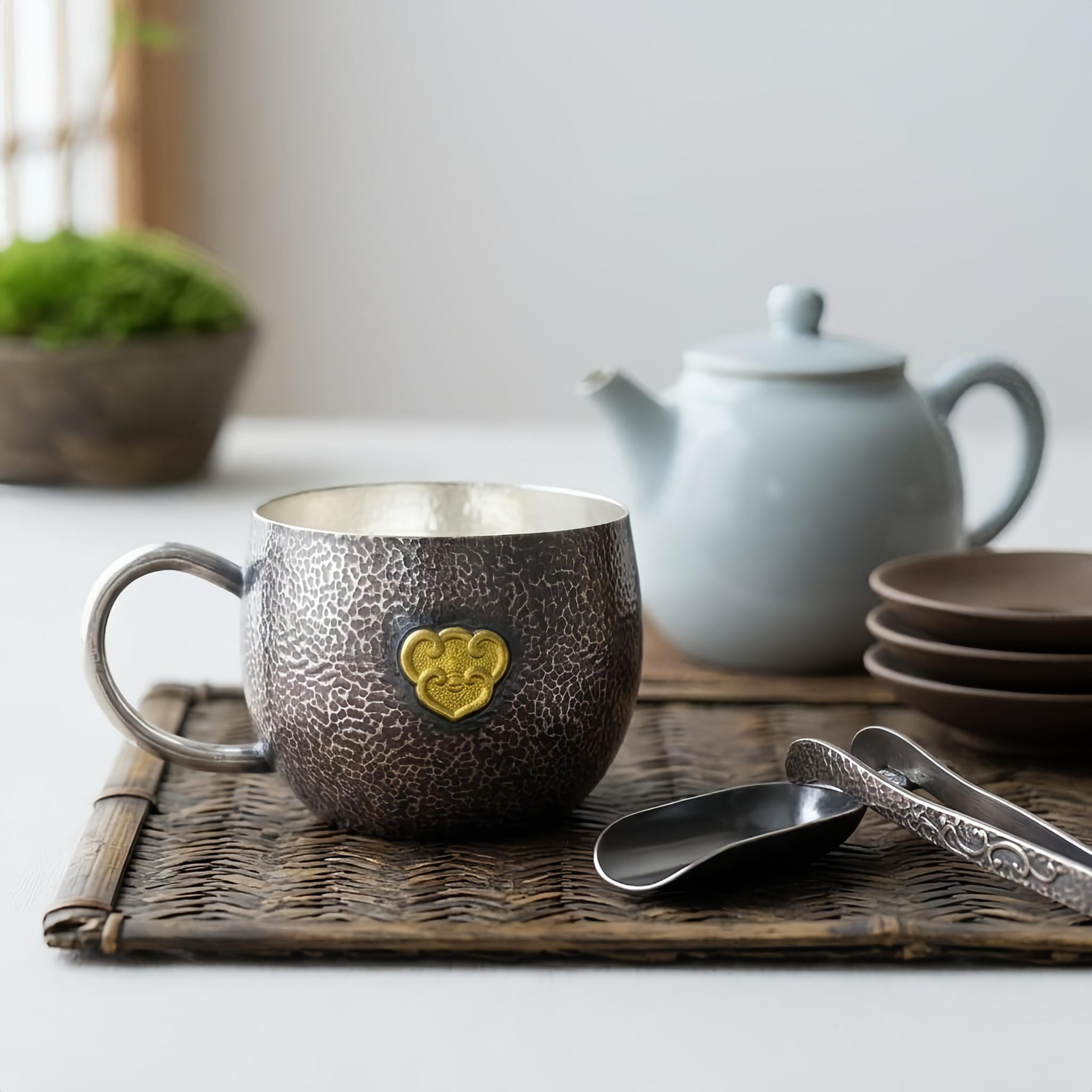 925 Sterling Silver Elegant Hammered Mug with Gold Mickey Mouse Emblem – Luxury Collectible-Premium Master Cup - Handicraft