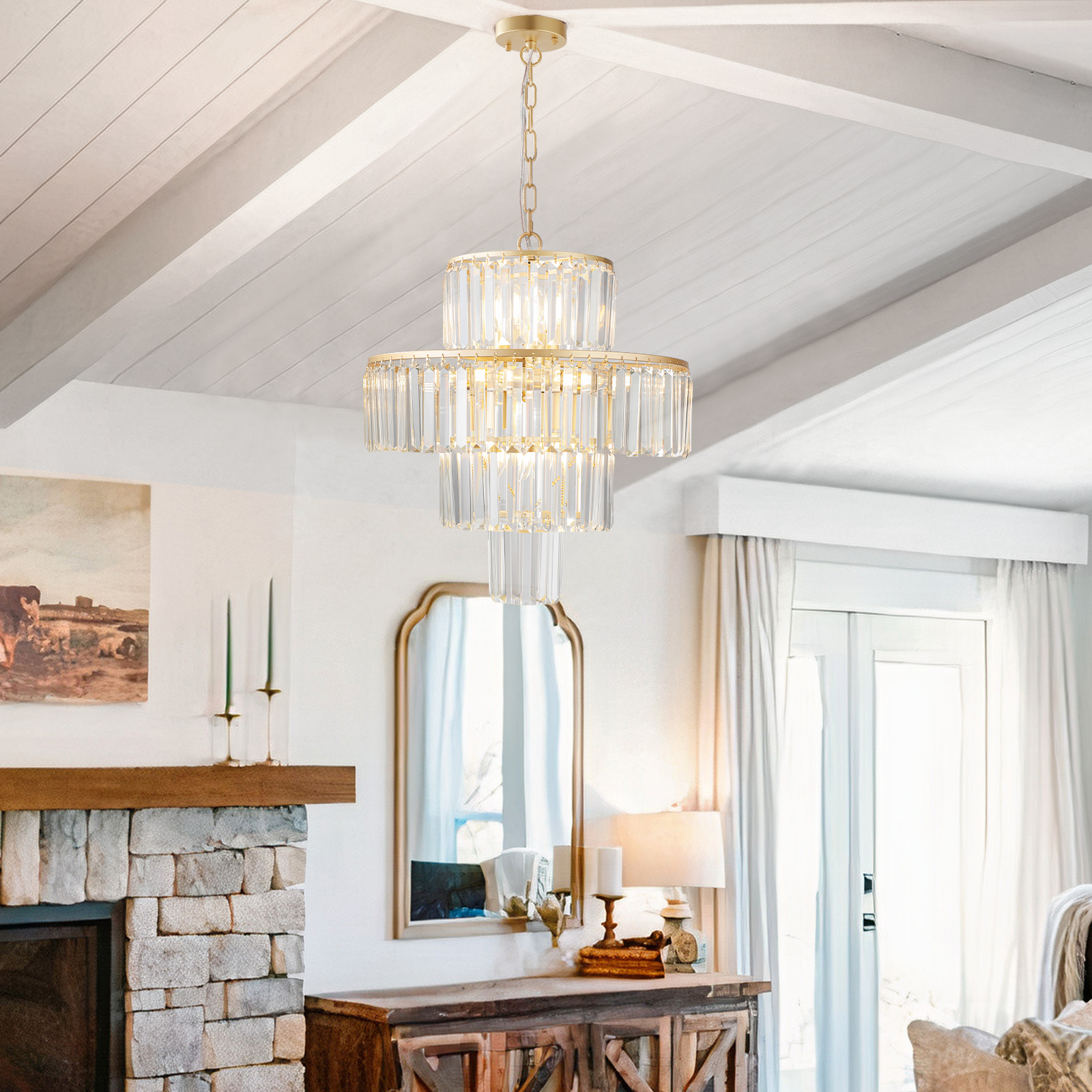 20in Modern Crystal Chandelier With Gold Finish, 4-Tier Design For Dining Room Or Living Room, Elegant Crystal Pendant Light Fixture Bulb Not Included