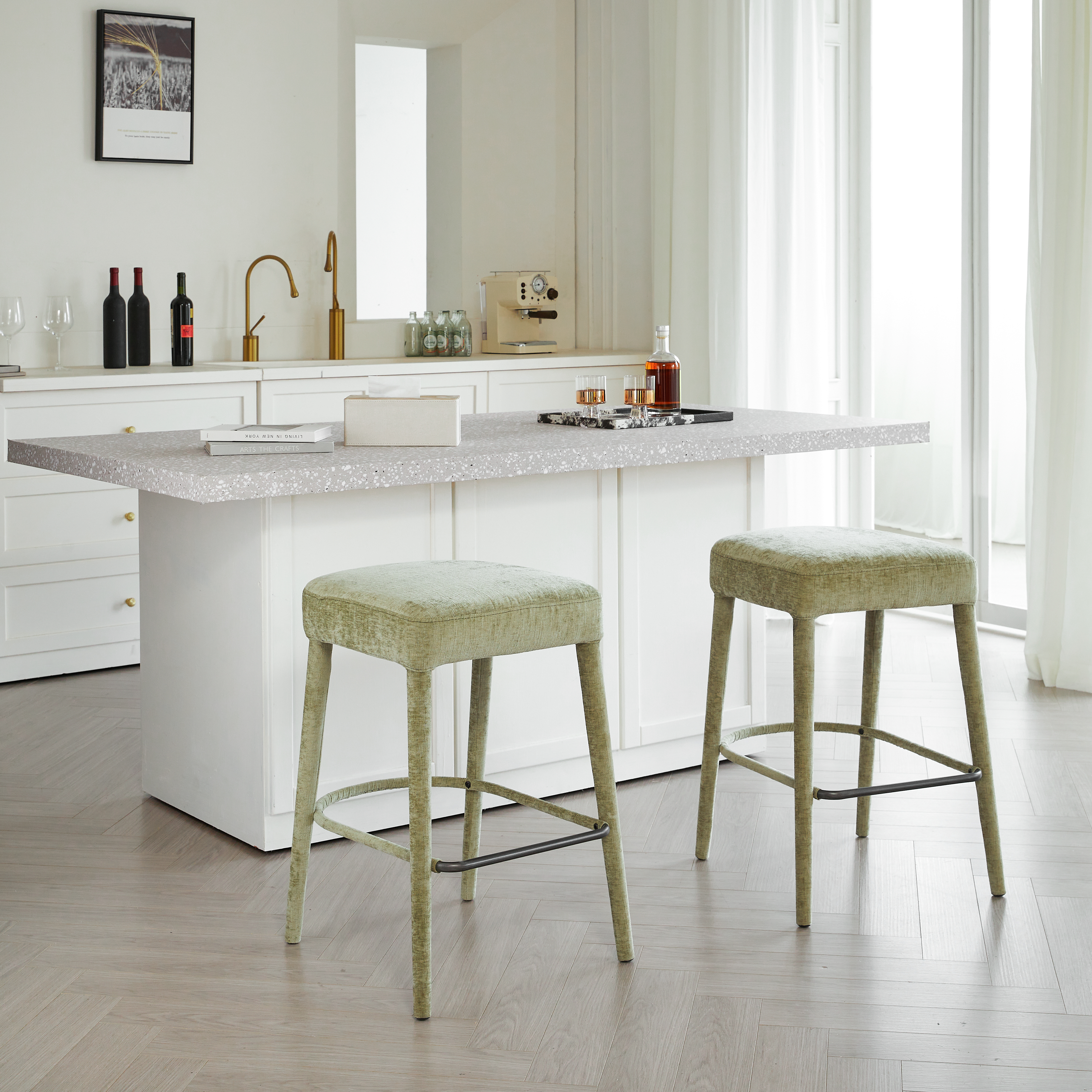 Backless Light Green Upholstered Fabric Bar Stool - Padded Seat With Sturdy Legs & Footrest Space-Saving Seating For Kitchen Island Dining Counter & Home Pub 2 Sets