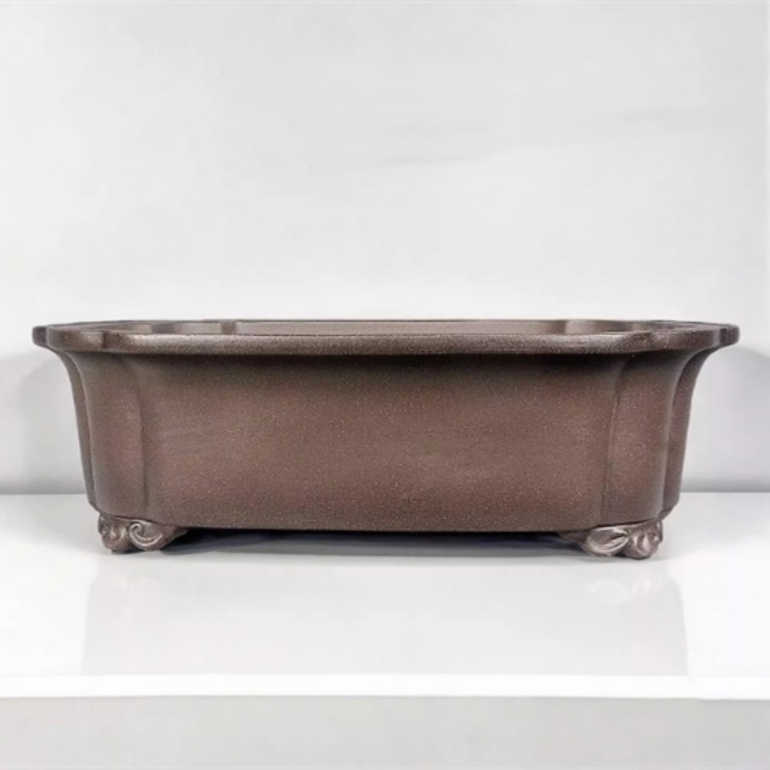 Zisha Bonsai Large Flower Pot Entirely Handmade Antique-Style With Cloud-Leg Base Rectangular Shape